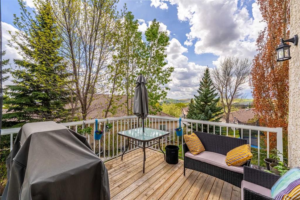 Beautifully renovated estate home on a quiet cul-de-sac in Scenic Acres, offering over 3,500 sqft of developed living space, including a legal suite in the walkout basement, perfect as a mortgage helper or for multigenerational living. The main floor welcomes you with a living room paired with a formal dining area, creating the perfect space for entertaining. From there, step into the large kitchen featuring south-facing windows, updated cabinets, a spacious pantry, and newer high-end appliances. The island is thoughtfully placed off to the side, opening up the area and allowing for smooth movement during busy mornings. Just beyond the kitchen, the cozy family room with a gas fireplace offers a warm place to unwind while staying connected to the heart of the home. This space opens onto the new deck, offering fantastic views of COP and downtown. The thoughtfully designed layout balances open-concept flow with distinct, functional spaces. A rare and convenient main-floor bedroom sits across from a full 4-piece bath, offering a versatile space that can serve as a private home office, a guest room, or a comfortable option for family members seeking main-level living. Upstairs features three generous bedrooms, including a massive primary that benefits from abundant natural light, vaulted ceilings, a walk-in closet, and a 5-piece ensuite ready for your personal touch. Two additional bedrooms and a modern full bathroom complete the upper level, with an open hallway overlooking the foyer. The newly built, self-contained basement suite includes two bedrooms, a full bath, an office, its own kitchen, living and dining area, private entrance, hook up for in-suite laundry, and a dedicated high-efficiency furnace. Throughout the home, you’ll find upgrades including new flooring, window coverings, refreshed bathrooms, and a fully renovated kitchen—with a brand new built-in microwave and oven. Sitting on a 6,275 sqft pie-shaped lot, the private south-facing backyard is surrounded by mature trees and bathed in sunlight, making it a peaceful retreat year-round. Walking distance to schools, parks, tennis courts, a hockey rink, and just steps from scenic ravine pathways. Quick access to Stoney Trail, Nose Hill Drive, and Crowchild Trail makes getting around easy, while nearby Crowfoot Shopping Plaza covers everything from groceries to dining. This home checks every box, blending comfort, flexibility, and an amazing location into one package.