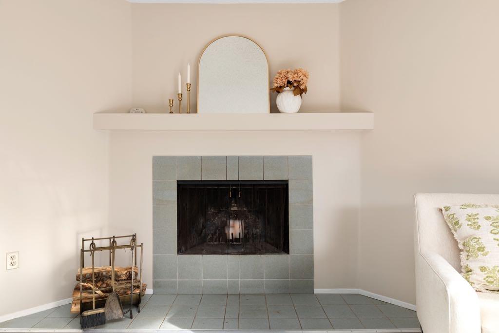 The living room is bright and airy, featuring an entire wall of windows that fill the space with natural light. The wood-burning hearth invites you to decorate the mantel, pull up a cozy chair, and settle in. The open, well-designed kitchen provides plenty of counter space and storage, complete with a built-in cabinet ready to display your treasures and cookbooks. A convenient two-piece bathroom completes the main level.