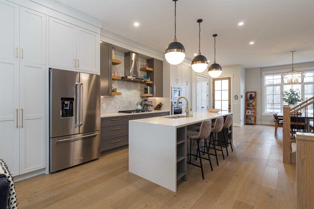 **OPEN HOUSE - SATURDAY NOVEMBER 15, 2025 - 1 - 3PM** SYLISH l SOPHISTICATED l TIMELESS DESIGN l MODERN LUXURIOUS FINISH l FULLY UPGRADED l INCREDIBLE CURB APPEAL IN KILLARNEY l WEST FACING YARD l MATURE LANDSCAPING l DEVELOPED STREET l 4 BED + 3.5 BATH l OVER 3050 SQFT OF LIVING SPACE l Welcome Home… to this stunning modern farmhouse infill that masterfully blends sophistication, comfort, and contemporary style. Upon entry, you’re greeted by 10 ft ceilings & an elegant front formal dining room w/ custom feature wall, hardwood flooring that flows seamlessly throughout the main floor. The gourmet kitchen centers around a sprawling island, perfect for entertaining, and opens to a bright living area featuring a sleek contemporary fireplace with custom built-ins. Large sliding patio doors extend the living space outdoors to a full-width deck and a beautifully landscaped, west-facing backyard. Upstairs, 9-foot ceilings and warm hardwood floors create an inviting atmosphere. The exquisite primary suite serves as a true retreat, complete with heated floors, a luxurious steam shower, dual walk-in closets, and a private flex area ideal for a coffee bar or vanity. Two spacious secondary bedrooms, a full bath, and a convenient upper laundry room complete the second level, combining style with everyday practicality. The fully developed basement adds yet another level of comfort and versatility, featuring a large media room with built-in cabinetry, a wet bar, a 4th bedroom with a full bathroom, and a roughed-in hydronic heating system for future comfort. Ideally located just minutes from downtown, top schools, and boutique shopping, this home offers refined urban living with every modern amenity.