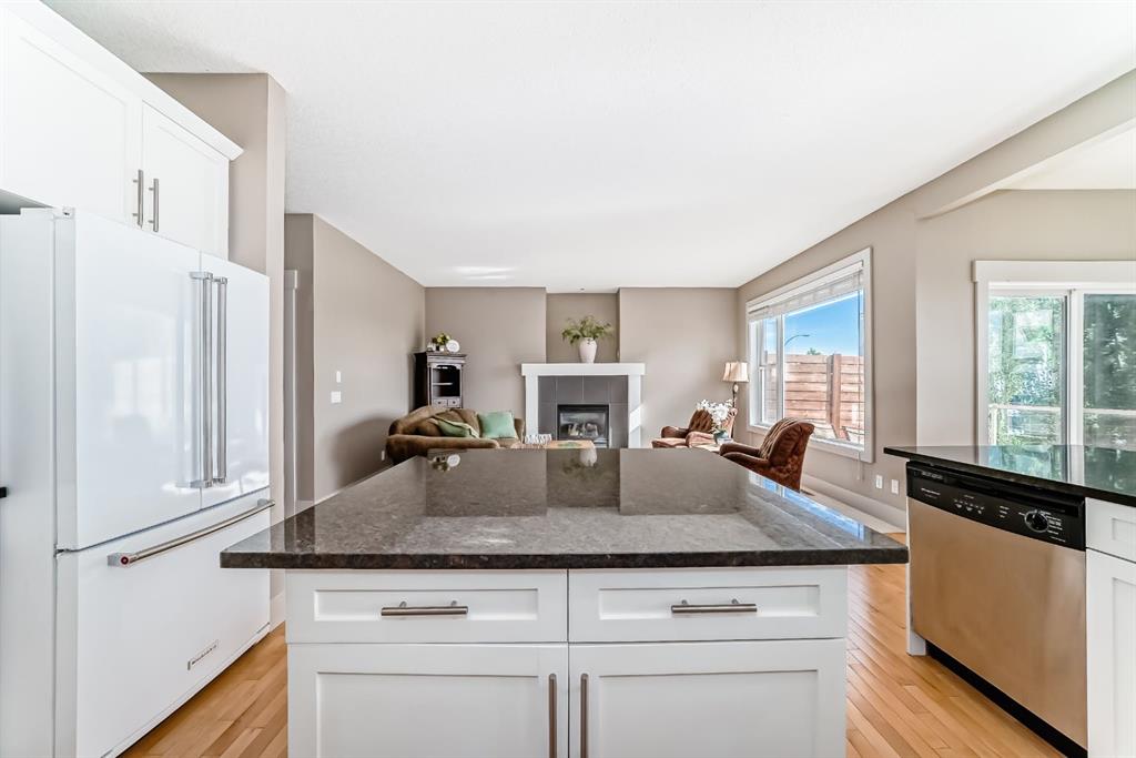 Elegant Family Home in Desirable Springbank Hill\" Discover this beautifully appointed residence in the prestigious Summit of Montreux community, offering an ideal blend of luxury, comfort, and functionality. The welcoming main floor features an open-concept design with a gourmet kitchen boasting granite countertops, stainless steel appliances, a spacious island, and ample cabinetry for storage. Sunlit living areas with gleaming hardwood floors and large windows flow effortlessly to a private home office—perfect for today’s work-from-home lifestyle. A cozy dining area and a gas fireplace in the living room create an inviting atmosphere for family gatherings. Upstairs, the luxurious primary suite impresses with a walk-in closet and a spa-like ensuite featuring dual vanities, a soaker tub, and a separate glass-enclosed shower. Two additional generously sized bedrooms share a well-appointed bathroom, while a cozy family room with balcony access provides the perfect retreat for relaxation. The fully developed lower level offers versatile space with two additional bedrooms, a full bathroom, and a kitchenette—ideal for guests, teens, or a home gym. Practical features include a double attached garage with built-in storage, a professionally landscaped yard, and a prime location near top-rated schools, upscale shopping, scenic parks, and easy access to major roadways. This home combines modern elegance with everyday convenience, making it perfect for growing families or those who love to entertain. Experience refined living in Springbank Hill—schedule your private showing today and make this stunning property your new home!