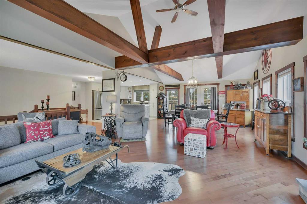 Welcome to this stunning 4-bedroom, 3-bath bungalow perfectly set on 0.99 acres of peaceful countryside just minutes from Rimbey. Combining high-end craftsmanship with warm rustic touches, this home is ideal for anyone seeking both comfort and function, with room to build your dream shop on the gravel prepped pad in back.