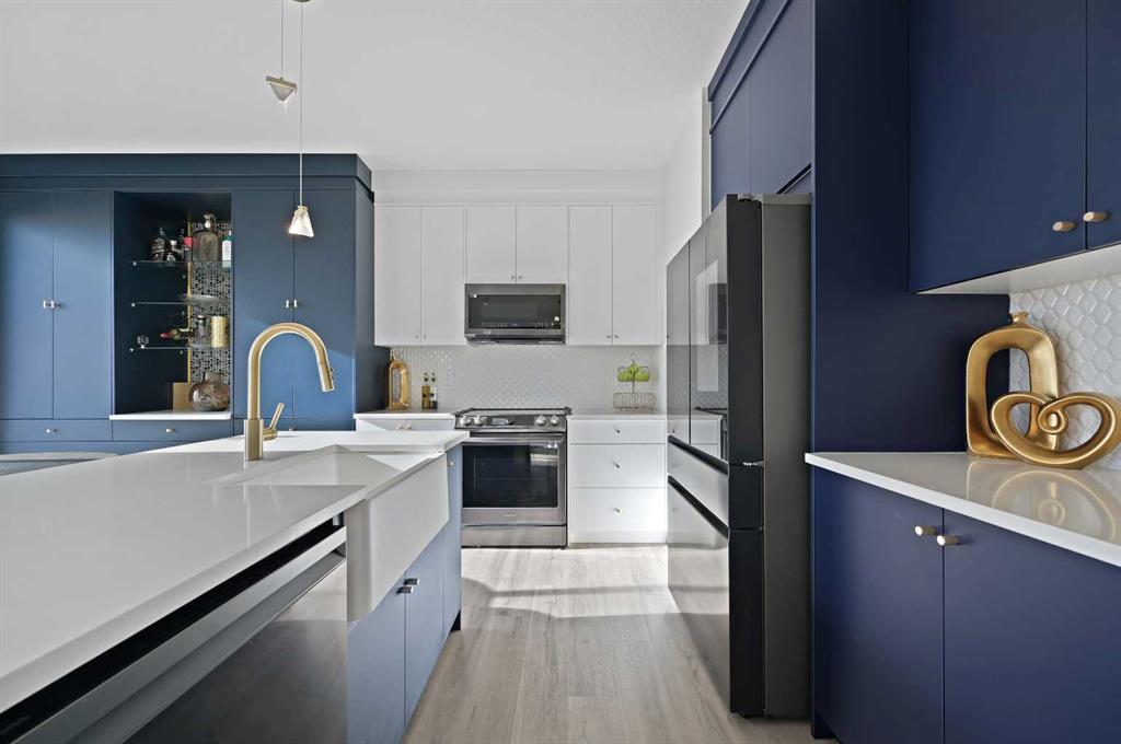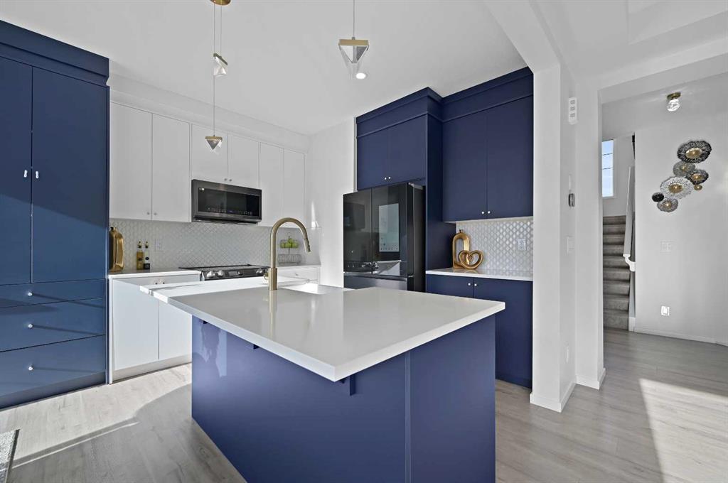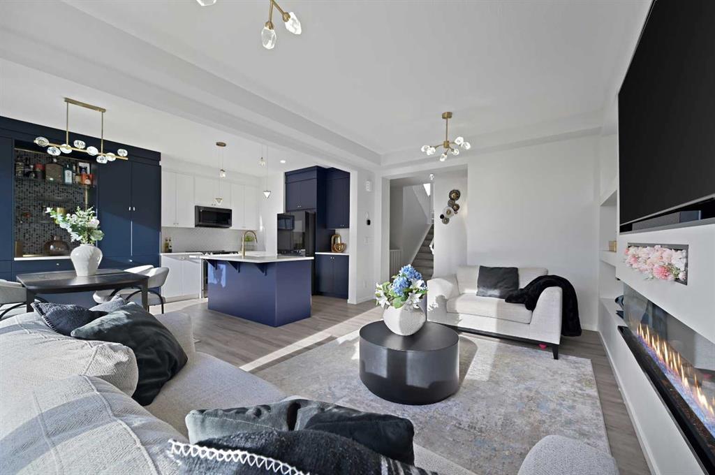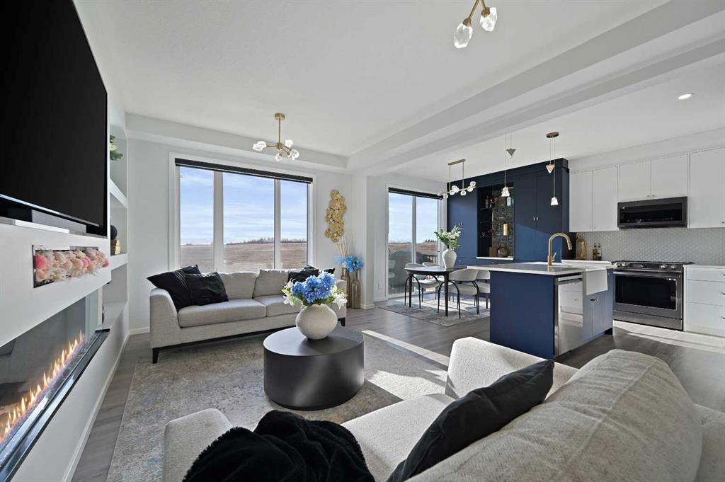 Welcome to this true 10/10 meticulously designed home with an amazing location rocking a SUNNY SOUTH facing yard with no rear neighbours behind and a WALKOUT BASEMENT that has been fully developed with a kitchenette and separate laundry to be that mortgage helper you\'ve been searching for! This is not your cookie cutter home, this home is truly one of a kind with incredible upgrades throughout and it hosts downtown Calgary and mountain views! The bright main level layout feels like a luxury show home with an oversized quartz island, quartz countertops, upgraded two tone cabinets, a farm sink feature, upgraded stainless black steel appliance package, a well designed built in pantry/bar area, pot lights, upgraded light fixtures, oversized electric fireplace feature wall with built-in shelving, air conditioning, upgraded luxury vinyl plank flooring, half bath, \"Next Step Option\" (stairs to basement finished with railing), knockdown ceilings throughout, 9 ft ceiling on the main floor and a sunny OPEN CONCEPT layout that seamlessly ties the main floor together to feel like home. The upper level greets you with the large bonus room with its very own private balcony off the front of the home and perhaps the coolest room in the house is the kids play area that was developed off of the bonus room.The well laid out primary bedroom retreat hosts a walk-in closet and a 5 piece ensuite bathroom with a dual sink quartz vanity, a fully tiled shower with the upgraded glass option and a deep soaker tub (upgraded with the \"Bath Oasis\" builder option). The spacious 2nd and 3rd bedrooms upstairs are conveniently located next to the 2nd full bathroom (also with a quartz countertop) which is adjacent to the upstairs laundry room. The fully developed basement rocks a full kitchenette including its own separate laundry which is perfect for guests or renters - this is the mortgage helper that you\'ve been dreaming of! This home is like-new, it\'s loaded with upgrades and it\'s the definition of pride of home ownership. Don\'t lift a finger because this beautiful home with an amazing location is ready for its next owner and this property shows even better in person - come see for yourself!