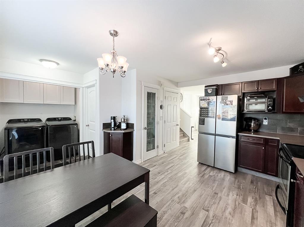 This 2-bedroom, 3.5-bathroom home features a thoughtful and functional layout, designed for comfort and convenience. The main floor features a bright, inviting living room with a cozy gas fireplace, flowing into a modern kitchen with rich dark cabinetry, updated stainless steel appliances, and a comfortable dining area. This level also includes main floor laundry, a 2-piece guest bathroom, and direct access to the back deck and backyard. Upstairs, you’ll find two spacious primary bedrooms, each with its own private ensuite. One bedroom features a walk-in closet, while the other includes two separate closets, providing exceptional storage. This layout is ideal for families, roommates, guests, or a smart rental setup. The fully developed basement offers additional living space, featuring a generous rec room, a 4-piece bathroom, a walk-in storage area, a crawl space, and a utility room. Outside, enjoy a fully fenced backyard with a great-sized deck, plus a rear parking pad for added convenience. This move-in-ready property is a fantastic opportunity for first-time buyers or investors. With schools, shopping, walking trails, and a bus stop steps away, this location perfectly blends comfort, practicality, and lifestyle. Don’t miss out, book your showing today!