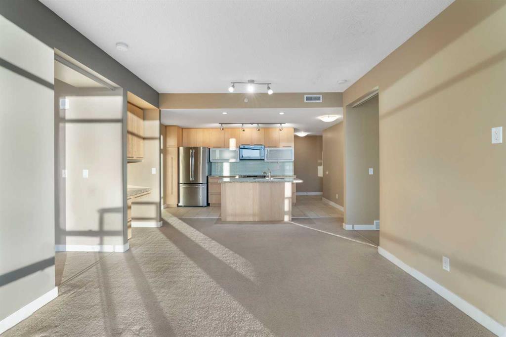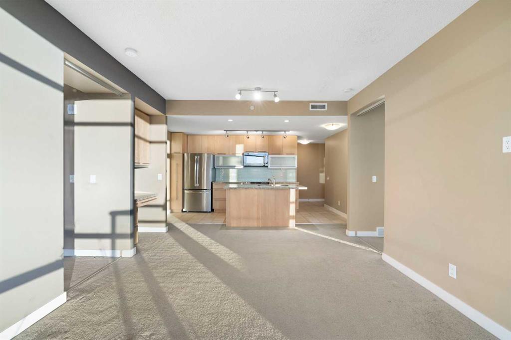 The modern kitchen is perfect for entertaining, complete with granite countertops, updated stainless-steel appliances, and an open-concept dining and living area that flows seamlessly to the west-facing balcony — the perfect spot to enjoy Calgary sunsets.