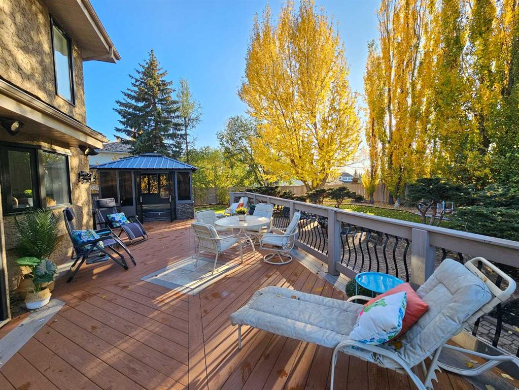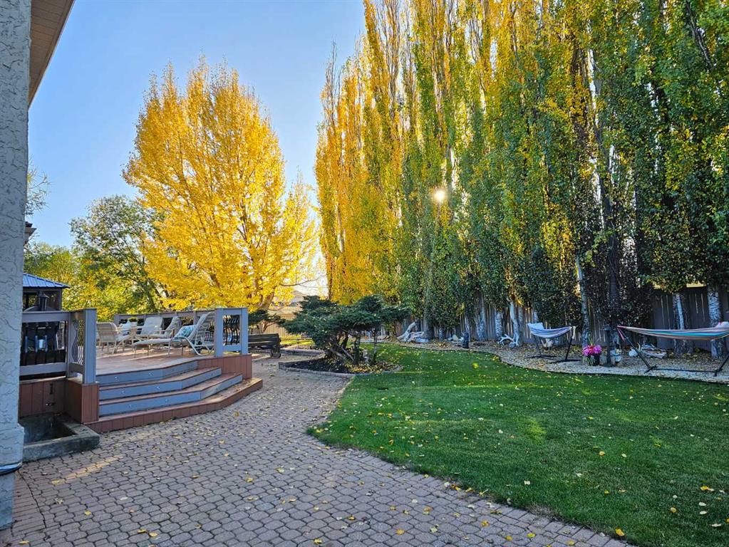 Absolutely Stunning Wedgewood Home on Double Lot Near Bear Creek Ravine & Golf Course! This remarkable property sits on two lots in a quiet Wedgewood location, offering a perfect blend of luxury, comfort, and timeless design. The home has undergone an impressive transformation in recent years, showcasing a seamless mix of modern upgrades and classic charm. Step inside the grand front entrance featuring a curved staircase and a striking chandelier that sets the tone for the rest of the home. The main floor boasts a sunken formal living room, elegant dining area, and a beautiful kitchen by Lafleur Cabinets — complete with quartz countertops, a large island with built-in lighting, and a walk-in pantry. A cozy dining nook with garden doors leads to the deck, while the sunken family room offers a wood-burning fireplace (with gas starter), creating a warm and inviting space. A powder room and laundry room complete the main level. Upstairs, you’ll find two spacious bedrooms, a 5-piece main bath with a laundry chute, and French doors leading to the luxurious primary suite. The master retreat features a walk-in closet and a spa-like ensuite with a large vanity, jetted tub, separate shower, and private toilet area. The fully developed basement includes two additional large bedrooms, a bathroom with a beautifully tiled shower, and a generous family/rec room — perfect for movie nights or entertaining guests. The heated triple garage is a showpiece of its own, featuring glass overhead doors, epoxy-coated floors, hot & cold water taps, a workbench, and built-in storage. Step outside to your private backyard oasis — surrounded by mature trees, professional landscaping, and an incredible firepit area. Enjoy relaxing evenings on the expansive back deck, complete with an enclosed gazebo and hot tub. Side street access offers additional parking for an RV or toys, making this property as functional as it is stunning. Home also has AC to keep you comfortable on those hot days. With tons of space and lots of privacy this wonderful home will be thoroughly enjoyed!