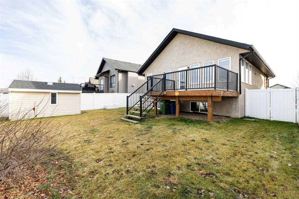 IMMEDIATE POSSESSION~ This MODIFIED Bi-LEVEL floor plan is functional and practical with 3 bedrooms and 3 bathrooms. A OVERSIZED front entrance with tile to the main floor with OPEN CONCEPT kitchen and living room. LOTS of natural light and extra high ceilings. REAL HARDWOOD floors on main floor and primary bedroom ABOVE THE GARAGE. FULLY finished basement with INFLOOR HEAT complete with tile and vinly flooring. DOUBLE heated garage with access to back yard which is vinyl fenced with a storage shed. From the dining room there is a garden door that leads to the back yard with 10x15 deck to enjoy family gathering. GREAT NEIGHBOURHOOD, FABULOUS LOCATION AND CLOSE TO schools, shopping, and Highway 2 only few minutes away.