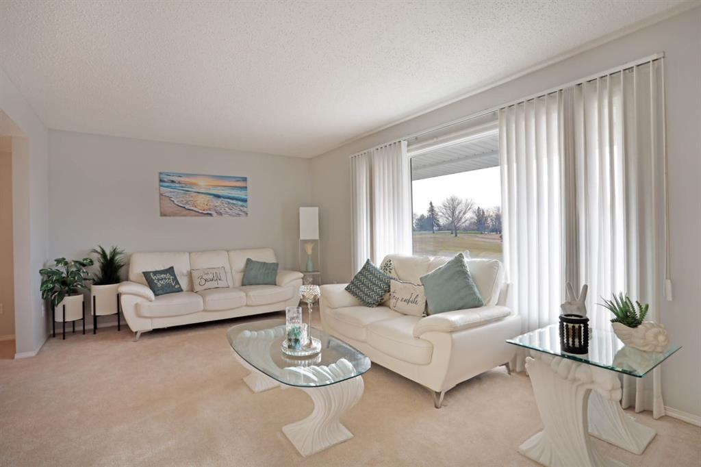 The main floor welcomes you with a bright, south-facing living room filled with natural light and unobstructed view of the golf course across the street. A formal dining room provides a great setting for family gatherings, while the kitchen features timeless white cabinetry, generous countertop space, and eat-in nook. Also on this level is a convenient 2pce bathroom that includes laundry facilities.