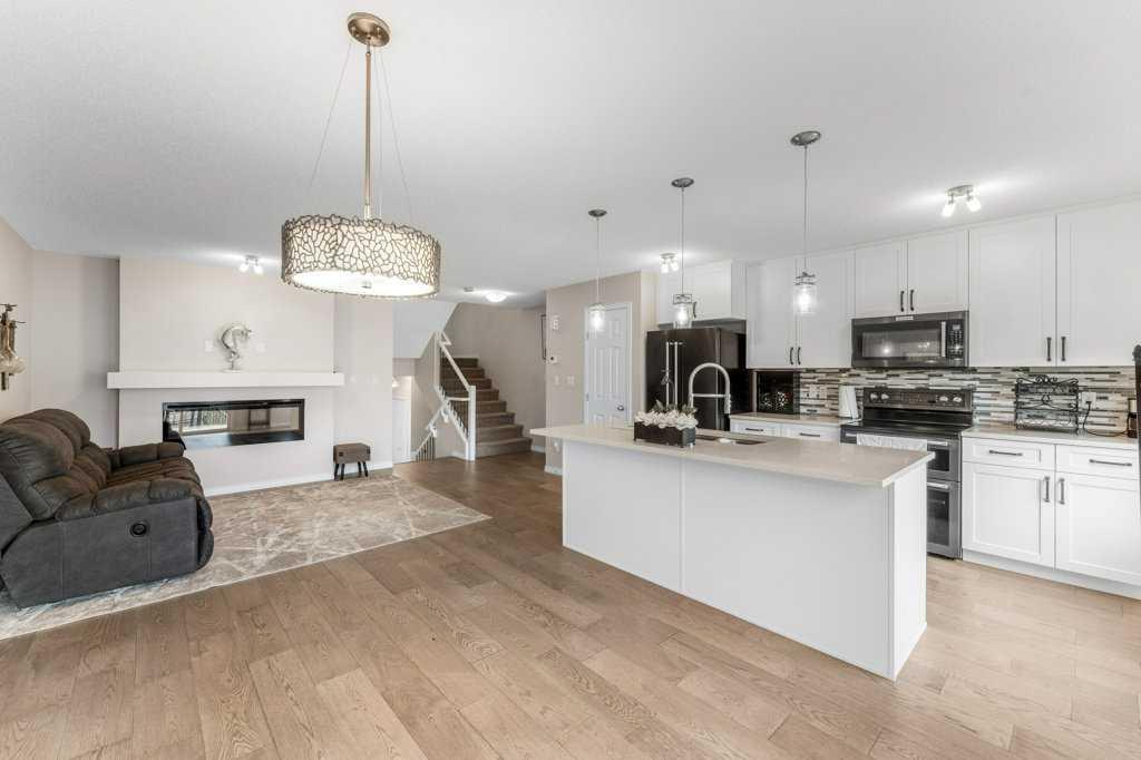 Upstairs, you’ll find two spacious bedrooms, a 4-piece bath, and upper-floor laundry, combining functionality and style. The open-concept main floor features a bright living area with a stylish fireplace, and a modern kitchen with upgraded cabinetry, quartz countertops, an eating bar, a pantry, and beautiful black stainless steel appliances, plus a generous dining space ideal for family meals and entertaining guests.