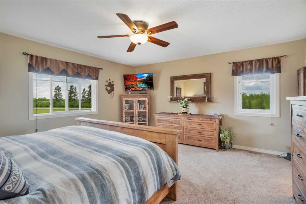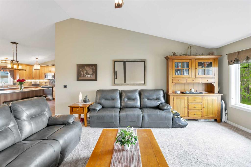 Welcome to your personal slice of peace and quiet with open spaces that will have you fall in love with this property from the moment you see it. Just 19 minutes to Lacombe, Ponoka or Rimbey and 10 minutes to Meridian Beach, this custom built bungalow is located on 5.93 acres. The roof lines, layout, quality of materials and craftsmanship are second to none. Designed with your family in mind, it combines functionality and elegance with a touch of simplicity. With more than 3758 sq ft of living space including a spectacular sunroom complete with hot tub, a massive 40 x 100 heated shop, open concept main floor and a design you won’t find anywhere else this home is everything you\'re looking for and more. The building materials include Canexcel board composite siding and Trex decking. Open your front door and escape from the real world while you bask in the sun on your west facing verandah. A practical foyer which is tastefully done for laundry leads into the kitchen featuring custom maple cabinets and inviting breakfast bar. The large living room with soaring ceilings is complimented by a wood stove to warm you on the chilly evenings. Off the living room is the large primary bedroom complete with a five piece ensuite and jacuzzi tub to relax and watch nature out the window plus a large walk in closet. The living room seamlessly flows into the dining room. Off the dining room are sliding doors to your composite deck and sunroom with 8 man 2018 Arctic spa hot tub where you’ll sit and enjoy fresh air and sunshine with unmatched views. The kitchen features under-counter lighting, large island, walk in pantry and did we mention soft close drawers and cupboards. Enjoy sunsets or watch the kids from every room. Off the kitchen there are two spacious bedrooms one currently being used as an office and a 3 piece bath. There is a plug off the verandah for your RV as well. The stairs lead down to a bonus room, large enough for a pool table and/or games and a gorgeous barn door which open to tons of storage and boasts infloor heat. Down the hall is the two tiered theatre room plus two more bedrooms and the furnace/utility room. Now to the outdoors-every guys dream shop 40 x 100 and insulated and heated! Imagine what you could do with that! A single car garage with radiant heating and a large shed with cement floor. Tons of room for gardens or if you’d like to build a fence bring the horses or chickens. Looking for classy country living? This is \'THE ONE\'!