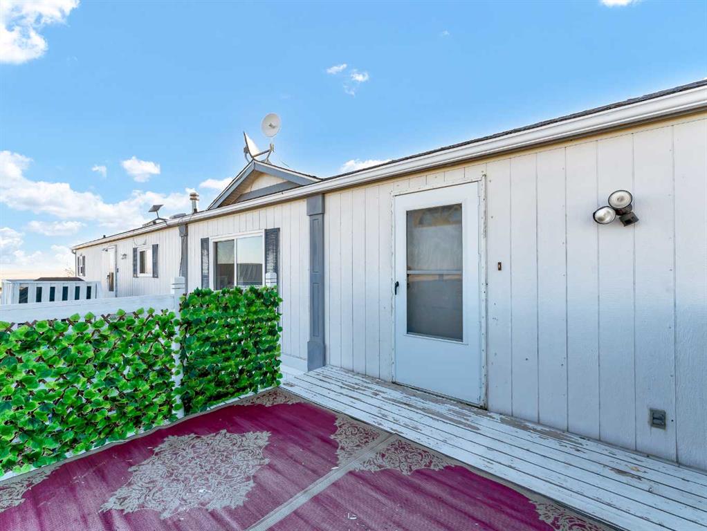 Enjoy quiet country living just minutes from Medicine Hat. This well-maintained 3-bedroom, 2-bathroom mobile home on 2.02 acres of well-drained, partially treed land with great views of the city and Dunmore. The home features an open-beam design with vaulted ceilings that sprawl the main living areas, spacious kitchen, dining and living area, with views out either side of the home and a primary bedroom with a 4-piece ensuite. It’s skirted with 6-inch insulation, Tyvek wrap, and vinyl siding, anchored with steel cables to reinforced concrete footings built to CMHC specs. The property includes all-weather crushed concrete driveway offering loads of parking, outdoor deck spaces and a manageable fenced in area for pets and kids with loads of additional land to use as you please. There’s room for kids to play, space for animals, or potential to build your dream home while keeping the mobile as a guest house. The overside garage sized at 26x28 makes for great parking and a shop with a stove heater. Located on the south side of City View Estates—just past Dunmore—this property offers great value, privacy, and convenience.