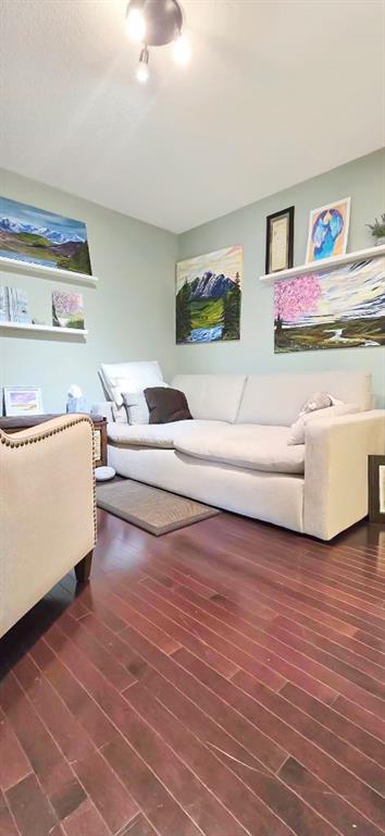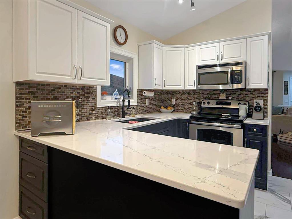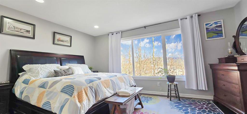 Enjoy breathtaking mountain views from both the front and back of the home. The main floor features hardwood flooring, a cozy gas fireplace, and a stylish kitchen complete with quartz countertops and ample cabinetry. A den on this level provides the perfect space for a home office or guest room, along with a four-piece bathroom nearby. The spacious primary suite includes a walk-in closet and a private three-piece ensuite.