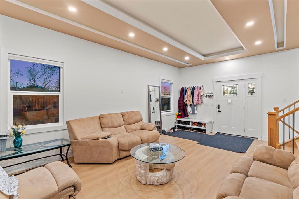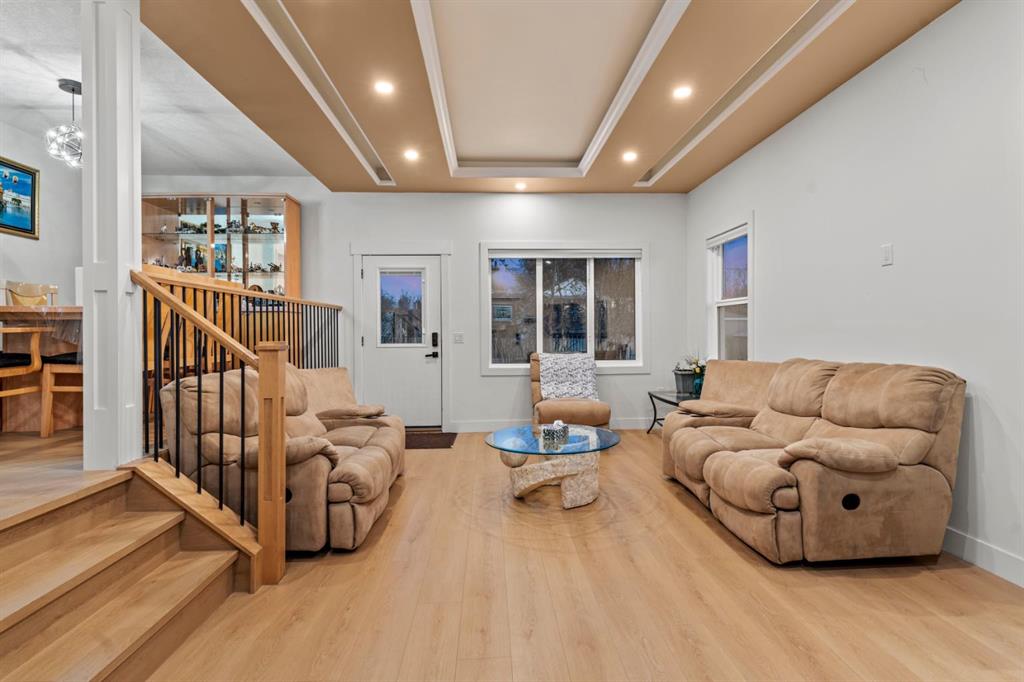 Welcome to an extensively renovated bungalow set on a large, private piece of land in the peaceful, rural-feeling pocket of Shepard, yet only minutes from Calgary’s major routes and city conveniences. This home offers 3,380 sqft of total living space, open layout that combines generous principal rooms with modern design. The main level features a huge fully updated kitchen with oversized quartz island, sleek cabinetry, high-end appliances, and panoramic windows that bring in beautiful evening light. Multiple living and family spaces provide ideal separation for large families, highlighted by a raised dining area overlooking the main living room and offering a warm, inviting flow for gatherings. The main floor also includes three bedrooms plus an office, along with two renovated ensuites and a full bathroom. The lower level is equally impressive, offering a spacious secondary living area complete with an illegal basement suite, a massive rec room, three additional bedrooms, two full bathrooms including another ensuite, laundry space, and ample storage. Outside, the property features a wide driveway, a detached heated garage, plenty of yard space for parking or future use, and a back deck off the kitchen area perfect for enjoying the open surroundings. This is a rare opportunity to own a move-in-ready, fully modernized home on substantial land within Calgary city limits, offering space, comfort, and versatility for multi-generational living or future potential.