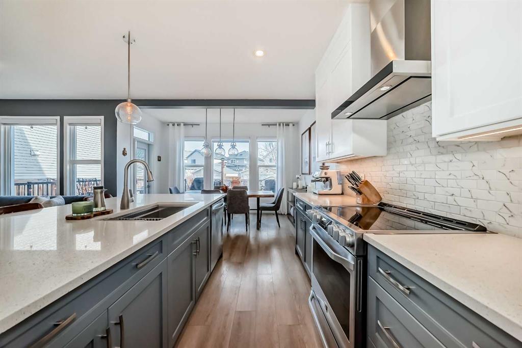 PRICE REDUCTION FOR SELL!!! OPEN HOUSE!!! SATURDAY, NOV. 22nd between 12:00 - 3:00 PM. Welcome to this stunning 3-bedroom, 3.5-bathroom family home with an attached front double-car garage and a FULLY DEVELOPED BASEMENT(completed in 2021), perfectly located on an OVERSIZED LOT on a quiet Cul-De-Sac. The neighbourhood is close to South Health Campus and a massive shopping plaza with various stores, restaurants and services. Quick access to Deerfoot Trail and Stoney Trail will make it easy to commute. Step inside to a welcoming Double - storey Front Foyer that leads you to an open concept MAIN FLOOR WITH 9FT CEILING facing east with the most beautiful morning light. Recently RENOVATED KITCHEN INCLUDES FULL-HEIGHT UPPER CABINETS, NEW DURABLE QUARTZ COUNTER TOPS, NEW OVERSIZED STAINLESS-STEEL SINK, NEW STAINLESS STEEL APLIANCES (LG STUDIO ELECTRIC OVEN, ELICA RANGE HOOD AND LG DISHWASHER 2023) and an updated tile backsplash. Freshly painted walls and a cozy full height Stone-cladded Gas Fireplace make the living room cozy and elevated. This home also comes equipped with a BUILT-IN CENTRAL VACUUM SYSTEM, making cleaning simple and efficient. Convenient mudroom with laundry area featuring a Countertop for folding and built-in cabinets for organized storage. The stylish powder room features an Updated Vanity that adds a fresh, modern touch, paired with an accent wallpaper. The UPPER FLOOR FEATURES ENGINEERED HARDWOOD FLOORING THROUGHOUT. With three comfortable bedrooms and two full bathrooms, there’s plenty of space for family and guests. A large Bonus Room faces west, offering stunning sunset views and direct access to a LARGE BALCONY—perfect for relaxing evenings. A Large Window in the master bedroom brings plenty of natural light. The Walk-in Closet offers ample storage to keep clothes and essentials organized. The EN-SUITE BATHROOM INCLUDES A JACUZZI TUB AND DOUBLE SINKS. The open-concept basement is designed for fun and function, featuring durable and waterproof Vinyl Flooring and a spacious Bar Area with Accent Lighting and a Mini-Fridge. Ample storage space keeps everything organized, while the LUXURIOUS 10 KW RELAZ-A-MIST STEAM SHOWER WITH BUILT-IN SEATING AND HEATED FLOORING adds comfort and relaxation. This home also FEATURES TRANE CENTRAL AC, NEW HOT WATER TANK (2025), AND SPLIT-LEVEL FURNACE WITH DEDICATED THERMOSTATS FOR EACH FLOOR (INCLUDING BASEMENT) keeping temperatures just right year-round. ADDITIONAL 3/4 - IN POLYSTYRENE SILVERBOARD GRAPHITE WALL INSULATION ENHANCES ENERGY SAVINGS. The exterior is finished with DURABLE NAVY BLUE HARDIE BOARD SIDING, complemented by all NEW EXTERIOR MAN DOORS. Permanent Exterior Lighting adds curb appeal and convenience during holiday seasons. Large, fully fenced yard with TWO-LEVEL COMPOSITE DECK and mature trees - perfect for family living and entertaining. A spacious outdoor Shed is also included to conveniently store garden tools or bicycles .