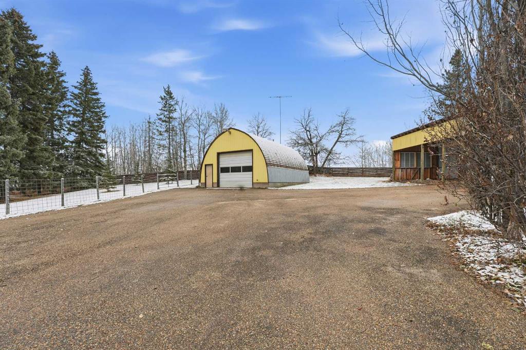 Your Own Private Slice of Country Paradise. Tucked away at the end of a quiet dead-end road in Red Raven Acres, this 1.2-acre property is surrounded by mature spruce trees, offering the peace and privacy you’ve been dreaming of. The spacious double-wide modular home is ready for your personal touch — bring your vision and make it shine! Inside, you’ll find a large primary bedroom with a 4-piece ensuite and private deck, the perfect spot to enjoy your morning coffee while soaking in the sounds of nature. Major updates have already been done for you such as brand new septic tank and mound (2024) and hot water tank (2019). Outside, you’ll love the 24’ x 32’ Quonset with a concrete floor, 220 wiring, air compressor, in-floor heat and hot water tank — ideal for projects, hobbies, or extra storage. There’s also a 16’ x 40’ open-faced pole shed (metal clad) plus a large canvas storage shelter for all your extras. This property offers the perfect blend of seclusion, space, and potential — a peaceful retreat just waiting for someone to make it their own.