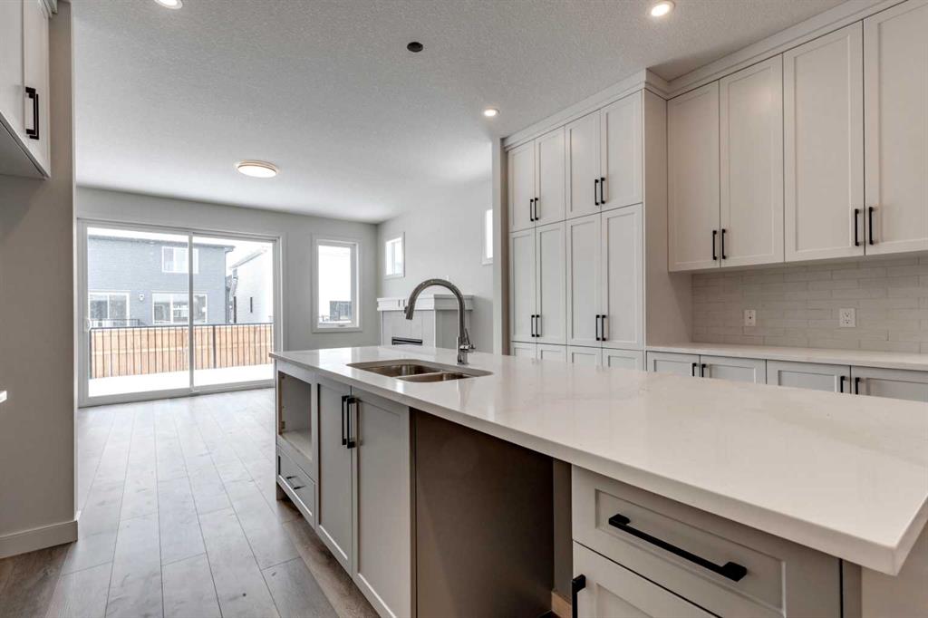 CUSTOM Bungalow living in a family friendly and exciting Rivercrest of Cochrane Community! This New build has the possibility to welcome you home near the end of April 2026. Bungalow living gives you the freedom that comes with main-floor living along with the extra space of a fully developed lower level. This near end of construction NEW Janssen Home 3 Bedroom with 2.5 bath offers just over 2,100 sq.ft. of total developed living space on two levels; designed with numerous upgrades for the discerning buyer. Open concept main-floor features 9’ ceilings and a beautiful vaulted ceiling in living room, Luxury Vinyl plank, tile flooring and carpet covered stairs going down. From front entrance walk up three steps right into the spacious dining area that leads into a Chef’s kitchen with full-height custom cabinets finished with crown mouldings, soft close doors/drawers & full extension glides, quartz counters with undermount sink, tiled backsplash, oversized flush island with overhang, stainless steel appliances - easy access microwave in island, gas range, chimney hoodfan w/full tile to ceiling backsplash, refrigerator and dishwasher. After dinner walk over to your spacious vaulted ceiling living room with gas fireplace then walk through a beautiful 8\' patio door to huge 12’ x 14’ back deck overlooking yard. Photos do not show vaulted ceiling but is a must see! Generous main-floor primary bedroom complete with LARGE walk-in closet, 5-pce ensuite, quartz counter with dual undermount sinks, taller vanity with soft close doors and full extension drawers, 5’x3’ tiled walk-in curbless shower with bench, soaker tub and private toilet room. Laundry room is conveniently located in primary walk in closet. Lower level offers wide-open rec-room, two generous sized bedroom\'s, 4-pce bath, linen closet and plenty of space for storage. Family-owned and operated Janssen Homes has been building award-winning homes for over 60-years and is excited to complete another build with you!!! Upgraded features include: 9\' main floor ceilings and vaulted ceiling in living room with knock down Spantex, railings & metal spindles, LoE Argon slider windows, R-50 attic insulation, high-efficient furnace w/programmable thermostat & drip humidifier, HRV, 168 sq.ft. deck at back w/aluminum railing & minimal steps to grade. Warranty includes: 1 yr comprehensive, 2 yrs heating, electric, plumbing, 5 yrs building envelope water protection, 10 yrs structural. ****Photos of interior and exterior are of previous Janssen Homes Builds****