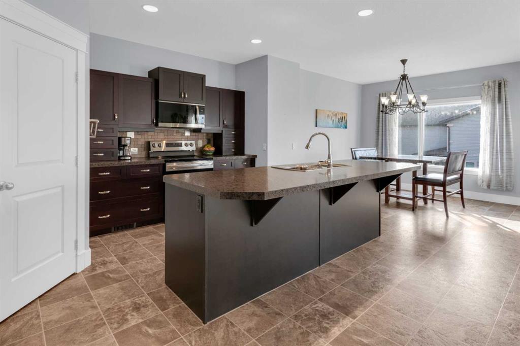 OPEN HOUSE DEC 7th, Sunday, 12-3PM...Welcome to this well-kept 2-storey home in the desirable community of Heritage Hills. Enjoy partial mountain views from the west-facing back deck and the charm of a family-friendly neighborhood just minutes from town and all amenities. Built in 2010, this home offers a bright, open layout with large windows and an abundance of natural light. The kitchen features rich dark wood cabinetry, a center island, and a large walk-through pantry leading to the convenient laundry/mudroom and back entrance. The main floor also includes an open-concept living area and a 2-piece bath. Upstairs, you’ll find 3 bedrooms, including a spacious primary suite complete with a 5 piece ensuite featuring a tub, shower, and double sinks. A 4-piece bath completes the upper level. Durable lino flooring throughout the main and upper levels adds both style and easy maintenance. The fully developed walkout basement offers a bright, open living space with in-floor heating, a large 3-piece bath, and access to the south-facing backyard. Step outside to a fully fenced back yard, landscaped with apple and pear trees, a perfect space for relaxation or family gatherings. Additional features include a double attached garage, drywalled with built-in shelving and storage, and a low-maintenance front yard. This home has been immacutely cared for and is in excellent condition—move-in ready and waiting for its next family