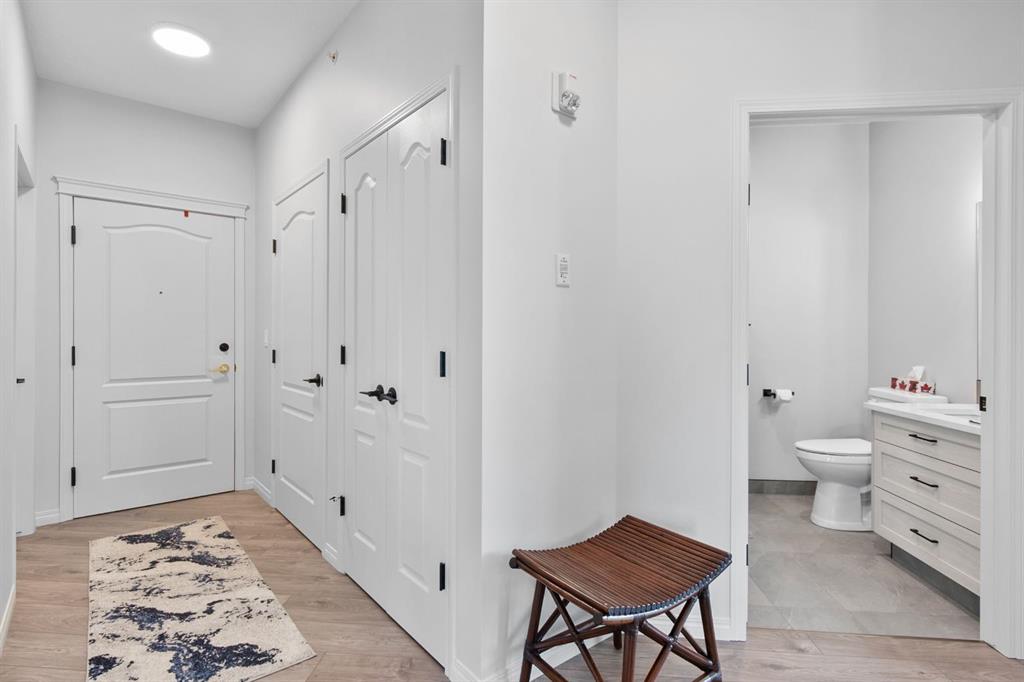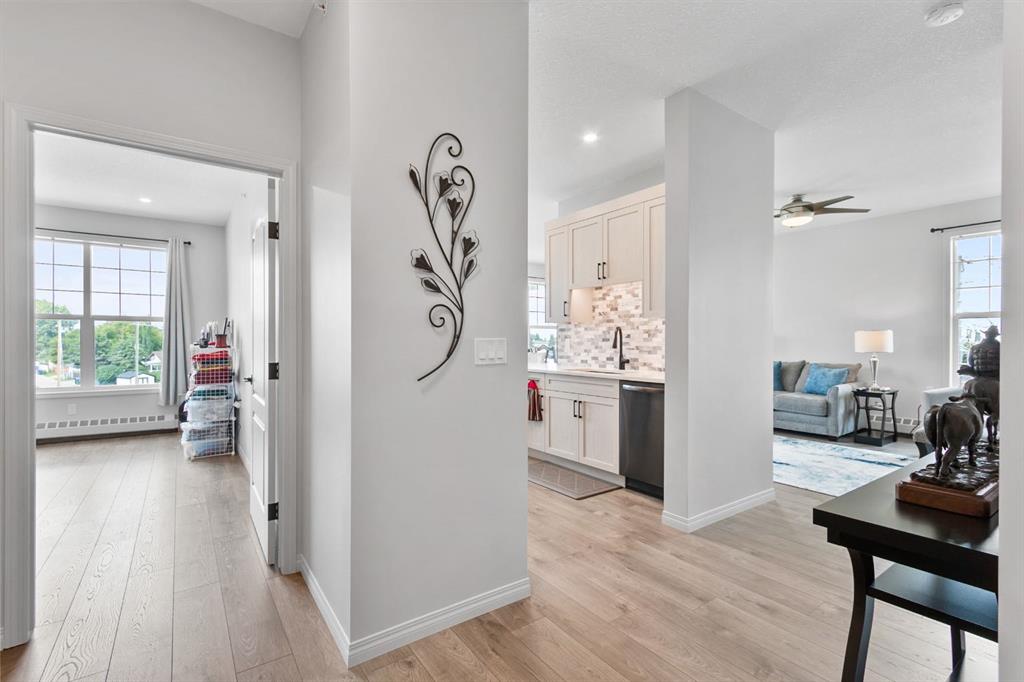 Welcome to this stunning 55+ condo that has been fully renovated from top to bottom! This bright and sunny two-bedroom, two-bathroom home boasts soaring high ceilings, an open-concept layout, and elegant modern finishes throughout. With walk-in showers, there are no concerns for mobility. You will appreciate the huge kitchen which will hold your everyday as well as special occasion dishes. This home features a detached garage, as well as a second, assigned parking stall. All of this is located in a highly sought-after building with exceptional amenities, including management, social spaces, fitness facilities, guest suites and more, this beautiful unit offers the perfect blend of style, comfort, and community. A true must-see!