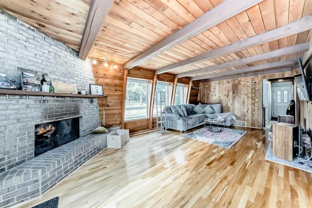 Just minutes west of Rocky, this charming arch-rib home is nestled among mature trees in a peaceful, park-like setting. Two levels of decking offer the perfect place to relax, unwind, and take in the beauty of the surrounding countryside. Inside, the main floor features a spacious kitchen that flows into the dining area and the cozy living room, complete with hardwood flooring and a wood-burning fireplace. A 3-piece bathroom, flex room, and laundry room add convenience to the main level. Upstairs, you’ll find four comfortable bedrooms and a 5-piece bath. The primary bedroom is generously sized and includes a private balcony overlooking the acreage—ideal for morning coffee or quiet evenings. The property also offers great utility with a double detached garage (31\'5\" x 23\'7\") and a well-sized shop with a wood stove (29\'4\" x 27\'4\"), perfect for projects, storage, or hobby space. A true country retreat—private, peaceful, and full of rustic charm.