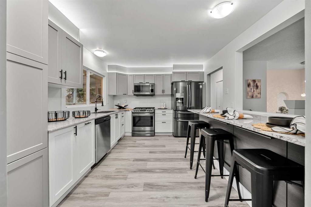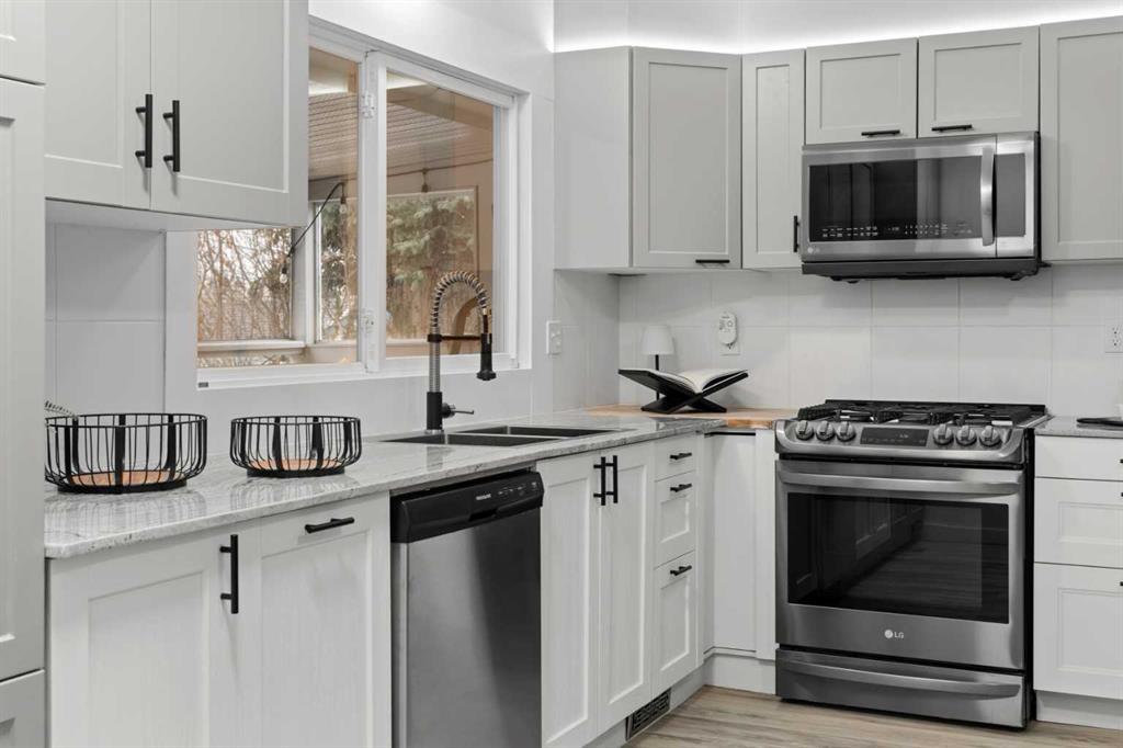 This beautifully renovated Brentwood home offers over 2,000 sq. ft. of stylishly updated living space, set on a quiet, private lot designed for low-maintenance living. The charming, no-mow front yard sets the tone for a home that prioritizes ease, comfort, and lifestyle. Inside, the main level features an open, contemporary layout centered around a spacious living room with a wood-burning fireplace—one of two in the home, perfect for cozy evenings in. The fully updated kitchen delivers both function and style with modern cabinetry and thoughtful storage solutions, granite counters, a generous breakfast bar, sleek stainless steel appliances, and seamless flow into the dining area. Step directly onto the screened-in deck, an inviting all-season lounge ideal for morning coffee, entertaining friends, or unwinding with a fire table and mounted TV. The main level also includes two well-proportioned bedrooms—perfect as a serene primary suite plus a 2 bedroom, dedicated office, guest room, or creative space—along with a stylishly renovated 4-piece bathroom. The fully developed lower level expands the living experience with a large, relaxed family room featuring the second wood-burning fireplace, two additional bedrooms that could also function beautifully as hobby rooms, a home gym, or flexible guest accommodations, a renovated spa-like 3-piece bathroom, and a roomy laundry area. A separate rear entrance adds privacy for guests or the option of future rental potential (subject to municipal approval). Outdoor living is equally appealing: enjoy a covered patio, private south facing yard with fire pit, space for container gardening, and a second covered deck—perfect for hosting or simply unwinding in your own oasis. Parking is effortless with a double detached garage plus front driveway space for three more vehicles. Upgraded triple-pane windows enhance comfort, energy efficiency, and year-round quiet. Located in the heart of Brentwood, you\'re just steps from parks, schools, recreation facilities, cafés, shopping, transit, and the University of Calgary—everything you need within minutes. With modern upgrades, flexible living spaces, and a low-maintenance lifestyle, this home is an ideal fit for homeowners seeking comfort, convenience, and elevated everyday living.