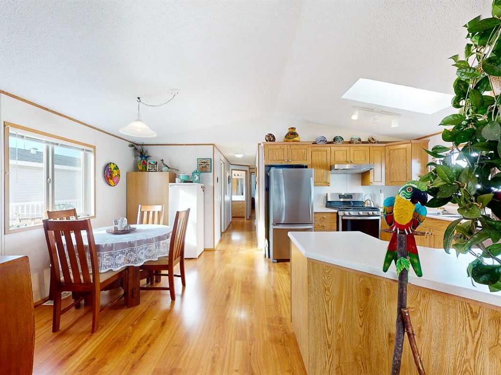 Ready to downsize but don’t want to give up your outdoor oasis? Welcome to 1 Appaloosa Way in the sought after community of Macleod Meadows! This perfectly maintained, two bedroom, two full bathroom, 1200sf home with a 12 x 16 insulated, wired workshop might be just what you’ve been dreaming of! Enjoy one level living at its finest in your spacious, open concept living, dining and kitchen area, with ample space to hang out with your family members or entertain guests. There’s even room for your dining room table and six or so chairs - without having to rearrange the whole house to seat everyone! The large U-shaped kitchen is made for real-life chefs, with counters, cupboard and pantry space galore, as well as a skylight overhead for lots of natural light while you whip up your gourmet creations in your high-tech gas oven. Down the hall, you’ll find your laundry room with easy access to your private deck and yard, as well as a bedroom and three-piece bathroom. At the end of the hall, waits your owner’s sanctuary, complete a large ensuite bathroom, an XL soaker tub and huge walk-in closet. Outside, the yard features low maintenance landscaping with just enough grass out front to keep that green lawn A+ ranking you’ve prided yourself on over the years. In the back yard, enjoy all of your favourite seasonal flowers on your large south facing deck - complete with an electric awning for a bit of shade during the dog days of summer. Plus, there are two sheds behind the home to store all the outdoor extras you’ve accumulated. This home is located in Macleod Meadows Manufactured Home Community, close to shopping, the Health Centre, the Oldman River and all that vibrant town of Fort Macleod has to offer. Lot rent is affordable at $450 per month, including sewer, garbage and recycling pick up. Water is approximately $50 per month. Pets are welcome, but require Park approval. Call your favourite REALTOR® to view this property today!