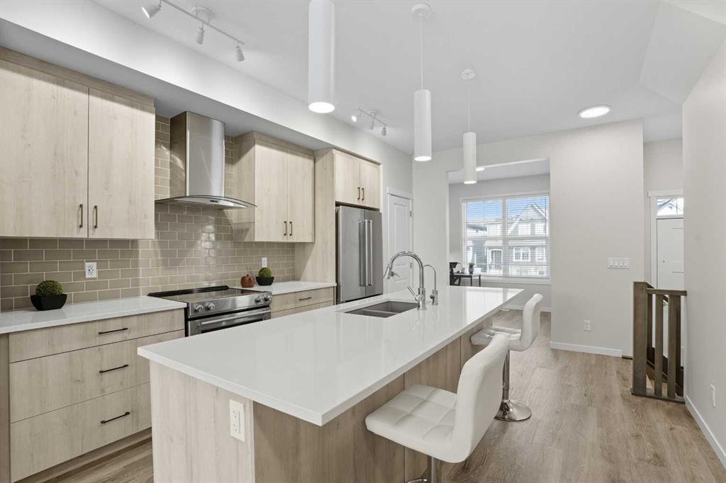 Welcome to 1075 Mahogany Boulevard SE, a pristine semi-detached home with nearly 1,700 sq. ft. of above-grade living space and a spacious basement offering huge future potential. Located in the sought-after lake community of Mahogany, this property blends contemporary design with family-friendly functionality. The main floor features a bright, OPEN-CONCEPT LAYOUT where expansive windows fill the living, dining, and kitchen areas with natural light. The CHEF-INSPIRED KITCHEN showcases FULL-HEIGHT CABINETRY TO THE CEILING, ELEGANT QUARTZ COUNTERTOPS, UPGRADED STAINLESS APPLIANCES, a SEPARATE HOOD FAN, BUILT-IN MICROWAVE, and a BUILT-IN WATER FILTER at the sink. A VERSATILE DEN/BEDROOM on this level adds flexibility for a HOME OFFICE, GUEST ROOM, or PLAY SPACE. Upstairs, unwind in the PRIMARY SUITE with a STYLISH 4-PIECE ENSUITE, while TWO ADDITIONAL SPACIOUS BEDROOMS share a SLEEK 3-PIECE MAIN BATH. A BONUS ROOM and UPPER-LEVEL LAUNDRY provide extra convenience for busy families. The basement offers 9-FT CEILINGS, TWO LARGE WINDOWS, and ROUGH-IN PLUMBING for a future bathroom, creating endless possibilities for a SUITE (subject to approvals), GYM, MEDIA ROOM, or EXTRA LIVING SPACE. A REAR DECK extends the living area outdoors. Enjoy year-round recreation with Mahogany’s LAKE, BEACHES, PARKS, TRAILS, SHOPPING, DINING, and SCHOOLS all close by. Move-in ready and impeccably maintained, this home delivers SPACE, STYLE, and a PRIME LOCATION, schedule your showing today.
