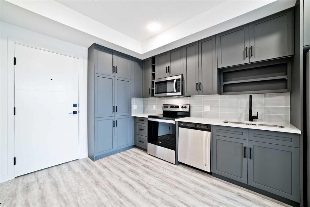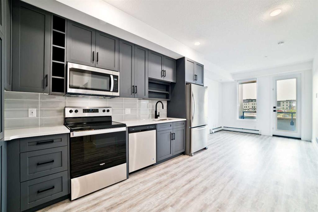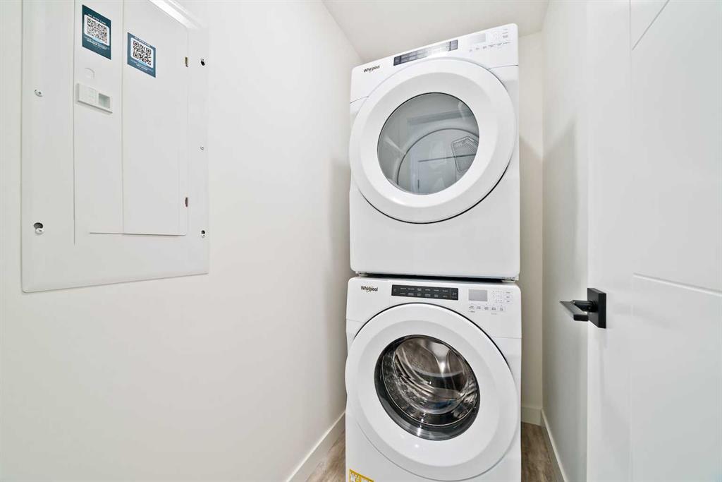 Experience modern urban living in this beautifully designed 2-bedroom condo in the highly sought-after University District. This bright top floor home immediately welcomes you with an abundance of natural light and elevated modern finishes. The thoughtfully designed layout features stainless steel appliances, quartz countertops, floor-to-ceiling cabinetry, dropdown ceilings, and LED under-cabinet lighting for a sleek, polished look. Luxury vinyl plank flooring flows throughout, enhancing the contemporary feel. Enjoy morning coffee or evening barbecues on your private patio, and stay comfortable year-round with in-suite air conditioning. Residents enjoy exceptional building amenities including a 700 sq. ft. lounge with a full kitchen off the main lobby, a car wash bay in the parkade, secure bike storage, and a beautifully appointed 4,200 sq. ft. rooftop patio on the second floor—complete with bench seating, planters, and a cozy gas fireplace. Positioned in one of Calgary’s most connected and convenient areas, the building sits just steps from Save-On-Foods, popular cafés, fitness studios, and a host of new amenities. The University of Calgary, Market Mall, and Alberta Children’s Hospital are all just minutes away, making this an unbeatable location for everyday living.