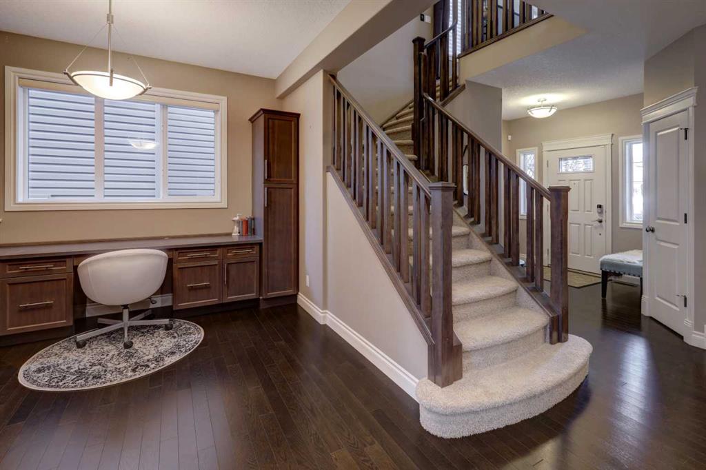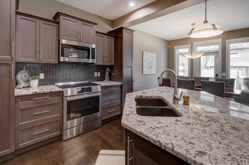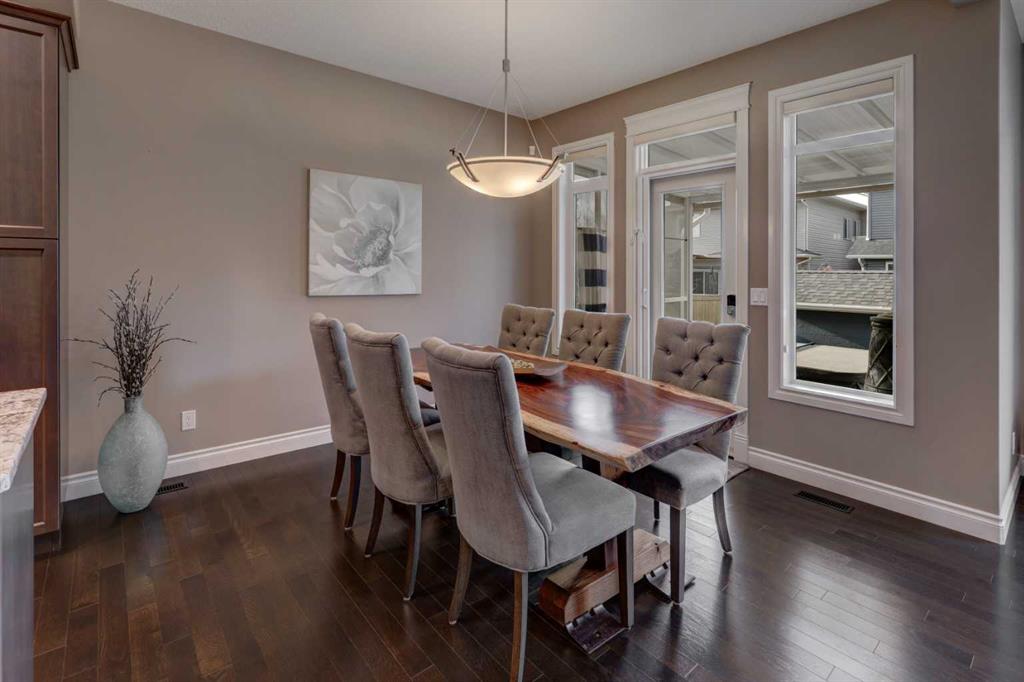****OPEN HOUSE SAT NOV. 22 FROM 2-4**** Welcome to your new home in Ravenswood - where luxury & fine details combine with location & pride of ownership. This home is completely move in ready & all of the upgraded features of this former MCKEE SHOWHOME showcase timeless elegance and modern comfort. As you enter the quaint front porch note all of the room you have for seasonal decorating or a cute coffee space if desired. The extremely generous FOYER leads either to the OPEN CONCEPT main floor or down to the lower level - would be very easy to wall off the entryway & create a sep entrance for a private basement living if desired. As you continue onto the main floor note the gleaming REAL HARDWOOD FLOORS - immaculately maintained & cared for - as well as the BEAMED CEILINGS - a highly upgraded feature rarely found in homes today. The 2 pc bath is tucked away next to the mudroom space. Enter the main hall and note the HOME OFFICE SPACE w/BUILT IN CABINETRY & desk. The highly upgraded kitchen boasts granite counters, BUTLER\'S PANTRY, SS BOSCH APPLIANCES, touchless MOEN FAUCET (lifetime warranty) & a massive dining space. All of this leads to the very generous living room w/ gas fireplace & WEST FACING light. The majority of the windows on the west side of the home (both main and upper floors) have been upgraded to TRIPLE PANE. Head upstairs noting the classic WOOD RAILINGS & curved PLATFORMS on the stairs & enter the BONUS ROOM SPACE w/VAULTED CEILING & lots of natural light. The PRIMARY is host to a spa-like ensuite - sep corner SOAKER TUB, large tiled shower, 2 sinks & recessed water closet - all w/granite & upgraded finishings matching the rest of the house. The primary bedroom itself is adorned w/COVE CEILINGS, POT LIGHTS & built in speakers controlled from a receiver in the basement (all equipment included). These speakers are in other areas of the house as well, including the garage! Note the beautiful ambiance when you arrive for your viewing. The upper level is completed by 2 very large secondary bedrooms, fully upgraded 4 pc main bath & laundry room w/FRONT LOAD washer/dryer (included) & a nice window. The FINISHED BASEMENT adds flexible living space with a full bath and storage. The original MCKEE plans showed this basement dev w/2 more bedrooms (pls see plan in the photos as well as in the supplements). This plan could be completed by the new owners of this home making this a 5 bedroom property - perfect for a growing family or possibly as an illegal suite. Lastly, experience year-round relaxation on the covered deck w/hot tub, surrounded by low-maintenance landscaping in the back yard & zero scape in the front. Other upgrades include A/C, ON-DEMAND HOT WATER & DELTA FAUCETS. Steps to parks, schools (including Airdrie’s only FRANCOPHONE SCHOOL), green space, ponds & outdoor rink, this home combines luxury, comfort, and community. Come and see why Ravenswood is a great choice for family living.
