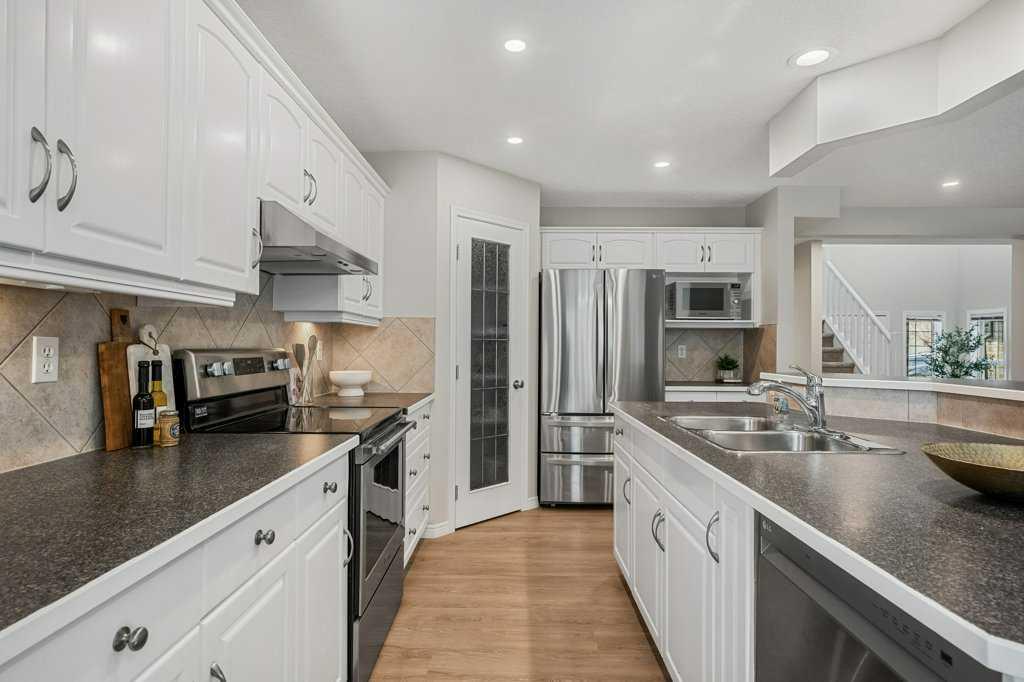 Fantastic value in this substantially and professionally updated home. Located on a quiet street in the NW community of Panorama Hills, this fully developed home feels like new. Fresh exterior and full interior paint top to bottom including freshly painted ceilings. Every inch of baseboard, trim, casings, railings, all cabinetry, all vanities and all interior and closet doors have been sprayed crisp arctic white. Stylish new luxury vinyl plank flooring throughout the main floor. Brand new plush underlay and new carpet on the upper and lower levels. New luxury vinyl tile flooring in all baths. Modern open main floor plan. The gourmet white kitchen features newer stainless-steel appliances, large central island with raised breakfast bar, walk-in corner pantry plus ample counter and cabinet space. Kitchen opens to the large living room highlighted by the tile clad gas fireplace. The large adjacent dining room leads out to the private covered back deck and west backyard. Privately located powder bath and main floor laundry round out the main level. The upper level starts off with a generous bonus room that offers many flexible uses. The perfect primary suite is highlighted by the walk-in closet with wood organizers and ensuite bath featuring dual sinks, jetted soaker tub and separate walk-in shower. Two more secondary bedrooms and a full bath complete this level. The fully developed lower level extends your living space with a 4th bedroom, full bath and large rec room area. Bonus double attached garage is heated! Other updates include additional pot lighting added, new roof, furnace, and newer hot water tank, all new light switches, light fixtures, 3 new toilets and brushed nickel door hardware. Steps to walking paths, dog park, schools, shopping, restaurants, parks, minutes to the airport and quick and easy access to Stoney and Deerfoot Trail. This is an affordable total package like new home. Nothing to do but move in and enjoy!