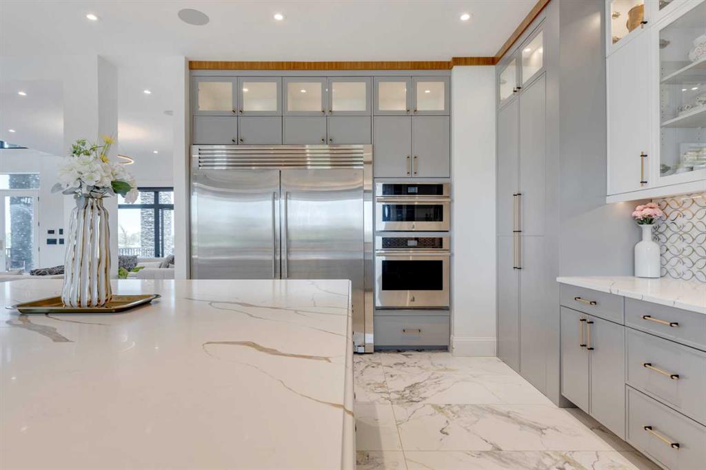 Located only seven minutes from Calgary and across the street from the Carnmoney Golf & Country Club, this exquisite acreage epitomizes luxury and exceptional design. Spanning just under 9,000 sq/ft of living space across three levels, this property boasts eight spacious bedrooms and nine bathrooms, equipped with smart toilets and top-of-the-line fixtures. It features three kitchens, perfect for entertaining and family gatherings, each with modern appliances and high-quality cabinetry. Additional amenities include a fully equipped home gym, a private home theater, and a massive wine cellar ideal for any connoisseur. The heated shop, with its own bathroom and mezzanine, offers a versatile space for various projects or storage needs. The master suite is a true highlight, covering over 700 sq/ft and featuring a private laundry. It opens onto an expansive west-facing balcony, over 800 sq/ft, offering stunning mountain views and a perfect spot to watch golfers at the Carnmoney Golf & Country Club. Every detail in this extraordinary home has been meticulously designed and executed, ensuring that nothing has been overlooked or underbuilt.
