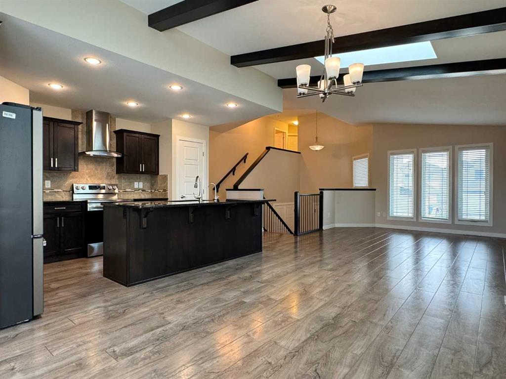 Welcome to 317 Moonlight Way W in Copperwood, a Modified Bi-Level home with plenty of space for family living. The main floor is bright and open, with the living, dining, and kitchen flowing together and direct access to the upper deck, perfect for outdoor entertaining. The primary bedroom includes an ensuite bathroom and a walk-in closet, while upstairs you’ll find two more bedrooms and a full 4-piece bathroom. A standout feature of this home is the walkout basement from the family room, offering extra living space with a cozy fireplace, two additional bedrooms, another 4-piece bathroom, and a convenient laundry and utility area. Outside, the fenced backyard features a spacious deck and a storage shed, making it perfect for relaxing or hosting gatherings. This home has everything you need for comfortable family living. For a closer look, please view the video walkthrough in the links tab or on YouTube by searching the home address.