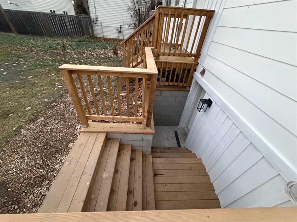 Fully updated two unit property situated on a quiet street with alley access in the family orientated town of Wembley. Upstairs boasts open concept between the kitchen, dining and living room. Kitchen has brand new counter tops + cabinets, flooring, paint and light fixtures. Dining is spacious and complimented by feature white brick wall. Remainder of main level is completed with two bedrooms, full bathroom with laundry. Basement has totally seperate entrance with seperate suite that has again open concept kitchen, dining and living room with brand new everything. Remainder of second unit is completed with two bed rooms, full bathroom with tiled shower, and utility room with laundry. Driveway is massive allowing for RV parking or adequate parking. Back yard is spacious with rear alley access allowing for future detached garage if your heart desires, and complimented by two sheds. So whether you are looking to enter into home ownership with a secondary suite to off set mortgage or add another rental property to your rental portfolio, with a high demand for rentals in Wembley, this home will be sure to please.(appliances can be negotiated to be installed by possession date).
