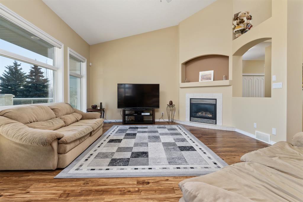 From the impressive concrete drive to the grand entryway, this home makes a statement. The main living area delivers an elevated open concept design with a maple kitchen, corner pantry, tile flooring, generous dining space, and a warm living room with a gas fireplace, all framed by oversized windows capturing the sweeping landscape & bringing in an abundance of natural light. You have the option of a front office, or additional living space or formal dining room at the entry.