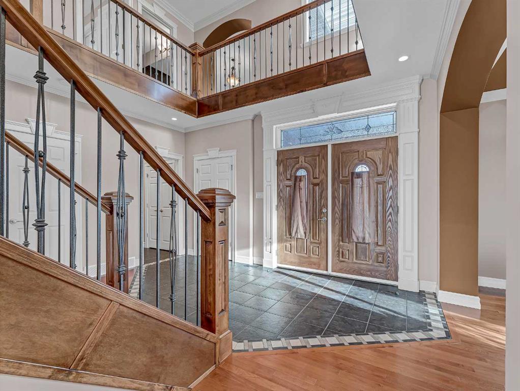Stunning Custom-Built Walkout in Sought-After Desert Blume! Welcome to this exquisite custom-built two-storey walkout nestled on a quiet crescent in the prestigious Desert Blume community. With a view of the golf course but set far enough away that your back yard is a private sanctuary. This home offers the perfect balance of luxury, privacy, and location! Featuring 5 spacious bedrooms and 6 luxurious bathrooms, including an expansive 5-piece spa-inspired ensuite, this residence is the epitome of refined living. From the moment you step through the front door, you’ll be greeted by a custom-crafted staircase, showcasing the impeccable woodwork and craftsmanship that define this home.