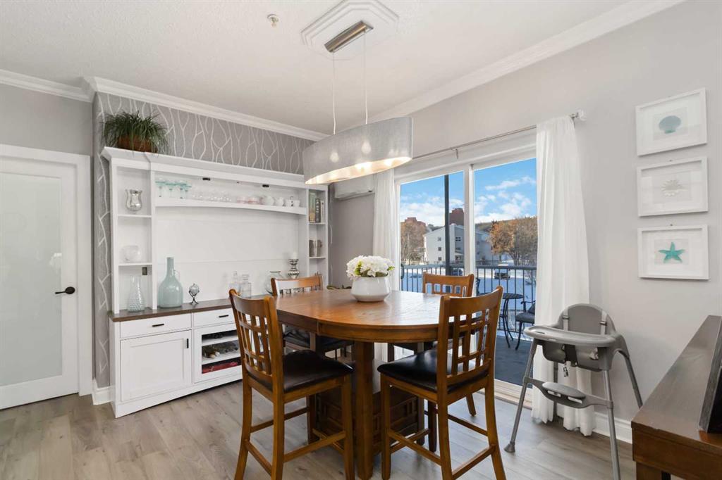 LUXURY REDIFINED ON THIS EXTENSIVELY RENOVATED 2-BEDROOM 2-BATH CONDO IN ROYAL VILLAGE. Welcome to a one-of-a-kind living experience in Royal Village, one of Fort McMurray’s premier, secure, and well-managed condo buildings. This stunning, extensively renovated corner unit redefines luxury and sophisticated downtown living. Every detail has been meticulously upgraded, starting with gorgeous luxury vinyl plank flooring and crown mouldings throughout the open-concept living space. The breathtaking, two-toned chef\'s kitchen features custom ivory and charcoal cabinetry, granite countertops, tiled backsplash, under-counter lighting, and a unique imported glass raised breakfast bar. The extension of this chef’s dream kitchen adds a side-by-side fridge freezer, built-in coffee bar with a beverage cooler, and a floor-to-ceiling wine rack. The spacious great room is bathed in light from surrounding windows and features a cozy gas fireplace, while the dining area opens via garden doors to your private, covered balcony. The primary suite is a true oasis with a spa-like ensuite featuring gold and black accents, a free-standing tub, a walk-in tiled shower, double sinks, and custom built-in double closets. Another unique feature of this bedroom is a remote-controlled drop-down flat-screen TV, which adds a touch of modern luxury. The second bedroom also boasts a renovated ensuite bathroom with double sinks and a stand-up shower, plus a walk-in closet with built-ins and direct access to the full bathroom. The home is complete with in-suite laundry. Additional upgrades include central A/C, all new light fixtures, redone flat ceilings with pot lighting, and crown mouldings. Enjoy peace of mind with heat and water included in condo fees, an underground heated parking stall, and a location next to the scenic River Valley. This exclusive property is truly unique. Call today for your private tour and prepare to be impressed!