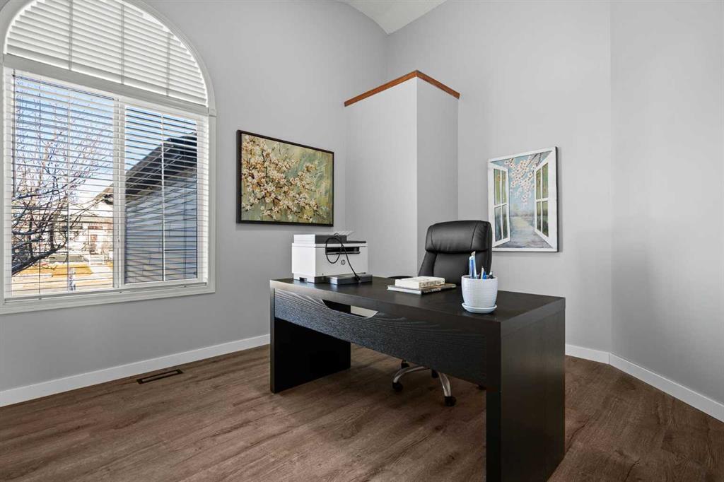 Welcome home to this impressive bungalow featuring a fully developed lower level and an oversized double attached garage. Showcasing more than $40,000 in recent upgrades, this property is perfectly situated on a peaceful close and offers a sunny south-facing backyard complete with a new COMPOSITE DECK—ideal for relaxing or entertaining. Inside, you’ll love the bright, open layout highlighted by VAULTED CEILINGS that span the entire main floor. The kitchen is both spacious and functional, offering abundant cabinetry, QUARTZ countertops, STAINLESS STEEL appliances, a convenient pantry, and a breakfast bar. The large dining nook includes custom built-in storage, perfect for barware, serving dishes, or seasonal décor. The inviting great room features a cozy GAS FIREPLACE and large windows that flood the space with natural light, along with direct access to the backyard. The primary suite is generous in size and includes a walk-in closet and a private ensuite with a skylight. A large main-floor den provides an excellent home office option or can serve as a second bedroom. The fully developed lower level is designed for versatility, offering a massive family room with updated vinyl plank flooring, a wet bar, two spacious bedrooms, and a full 4-piece bathroom.