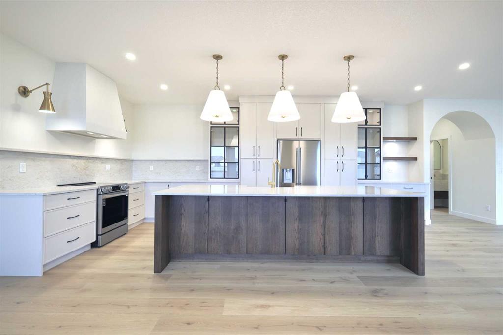 This stunning custom-built home by Avera Homes sits in the heart of Evergreen, one of Red Deer\'s most desirable and thoughtfully designed communities. Evergreen is where nature is at your door, and multi-use trails connect seamlessly to the city’s renowned trail system making outdoor recreation an everyday experience. Featuring four spacious bedrooms, a large bonus room, and an upper floor laundry room with built-in sink, this home is designed for modern family living with elevated comfort and style. From the moment you arrive, you’ll notice the attention to detail—from the covered front entry with composite decking to the striking designed exterior with unique custom arches that enhance the architectural beauty of this home. Step inside to discover a spacious, light filled layout featuring vaulted ceilings, 9\' walls and of course the heart of the home is a chef’s dream kitchen, showcasing premium level quartz countertops, a massive 5\' x 10\' hickory island with a farmhouse sink, and bespoke cabinetry throughout. Riobel brushed brass plumbing fixtures, ultra-clear curb-less glass shower enclosure, and a freestanding one-piece tub bringing spa level luxury to the bathroom. Every element of this home has been carefully upgraded. ~ Custom light fixtures and lighting plan ~ Solid white maple railings ~ Venetian plaster custom designed fireplace and range hood ~ Upgraded appliances and flooring ~ Custom tile and door hardware ~ Spray foamed garage ceiling and wall cavities for enhanced comfort in the primary suite. The outdoor living space is just as refined with a covered rear deck finished in composite decking perfect for year round enjoyment. The undeveloped basement is roughed in for in floor heat and ready for your personal touch, ideal for expanding your living space as needed. This home is more than just a place to live,, it’s a statement of craftsmanship, comfort, custom design and precision design throughout the interior and exterior. Every detail has been carefully curated to offer a truly one of a kind living experience, blending modern elegance with timeless architectural features. From premium finishes to thoughtful upgrades throughout, this property is a must see for discerning buyers who value quality and character in every square foot.