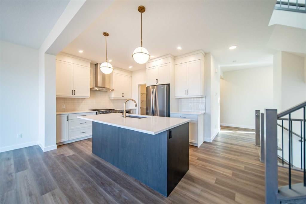 This stunning, brand-new home by award-winning Brookfield Residential is officially move-in ready and located in the highly sought-after community of Chinook Gate in Airdrie. Thoughtfully designed, this Rundle 24 model offers exceptional living with two spacious living areas, 3 bedrooms, 2.5 bathrooms, and an undeveloped basement with ample room for a future rec area, bedroom, and bathroom (with rough-ins + side entrance already in place). At the heart of the home sits a chef-inspired kitchen featuring a built-in oven range hood and microwave, and a slide-in gas range. A generous walkthrough pantry seamlessly connects the kitchen to the mudroom and the double attached garage, enhancing everyday convenience. Open to both the dining area and main living space, this kitchen is designed for effortless flow -ideal for family living and entertaining alike. A wall of west-facing windows along the back of the home fills the main floor with natural light, while the dining area’s patio doors provide direct access to the backyard. A cozy electric fireplace adds warmth and comfort to the living room, creating the perfect atmosphere for winter evenings. Beautiful natural wood railings with iron spindles lead to the upper level, where a central bonus room separates the luxurious primary suite from the secondary bedrooms, ensuring both privacy and functionality. The spacious primary bedroom boasts a spa-inspired 5-piece ensuite complete with dual sinks, a soaker tub, a walk-in shower, and an impressive walk-in closet. Two additional well-sized bedrooms, a full bathroom, a large linen closet, and a dedicated laundry room complete the upper floor. The basement, offering nearly 800 sq. ft., is a blank canvas ready for your personal vision - whether that’s a home theatre, gym, additional bedrooms, or all of the above and the bathroom rough-ins are already in place. Situated on a bright and sunny lot spanning nearly 4,000 ft2 in size with ideal west backyard exposure, this is the perfect home both inside and out! With both Builder Warranty and Alberta New Home Warranty, you can purchase with confidence. Fully finished, beautifully designed, and move-in ready, this exceptional home in Chinook Gate is perfect for a growing family looking for comfort, style, and a vibrant community.