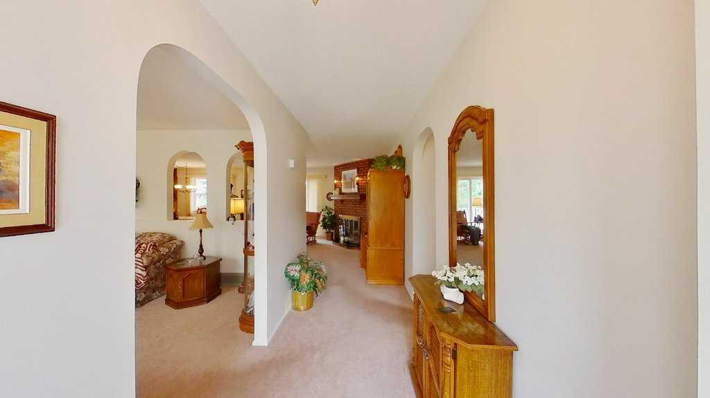 ?Proudly offered by the original owners, this rare and remarkable 2-acre private acreage in the prestigious Lake Ere Estates of Chestermere truly stands in a class of its own. This property offers the perfect blend of peaceful country living while being just minutes from Chestermere Lake, schools, shops, golf courses, and an easy commute into Calgary. From the moment you begin the drive up your secluded, paved driveway, the stunning mature landscaping, towering trees, and pristine attention to detail set the tone for what’s to come. The home’s iconic red-brick exterior, stately peaks, and beautifully designed front courtyard create jaw-dropping curb appeal. An oversized, heated double attached garage with upgraded exterior finishes ensures longevity and function. Step inside to discover an expansive, light-filled open-concept bungalow ideal for families of all sizes. The kitchen is the heart of the home, featuring extensive counterspace, ample cabinetry, and room to prepare meals with ingredients harvested from your very own garden. The dining area flows seamlessly into a warm and inviting living room, highlighted by custom curved architectural details and a floor-to-ceiling red-brick wood-burning fireplace, the perfect focal point for cozy evenings. Patio doors open to your private rear deck and outdoor oasis, where you can enjoy sunrise coffees, sunset dinners, and the peaceful tranquility only acreage living can offer. The main level continues with a dedicated office, a second family room, a formal dining room, a huge boot room, large laundry area, and a convenient half bath. The primary suite is truly a retreat—massive in size and offering a walk-in closet and a luxurious ensuite with an air-jet tub. Two additional bedrooms and a full bathroom complete the main floor layout. The fully developed basement provides exceptional additional living space, featuring an impressive recreation room, wet bar, home gym, two additional craft/den rooms, wine cellar storage, and ample storage throughout. Step outside and you’ll find multiple decks and patios, a fire pit area, horseshoe pit, garden beds, and beautiful open green space—perfect for family gatherings, summer evenings, and entertaining. The property is on city water (municipal co-op) and includes A/C, central vacuum, storage sheds (one powered), and impressive outbuildings including a 35’ x 23’ heated detached shop with 220 power & air compressor, plus a 45’ x 33’ Quonset for additional equipment, vehicles, or hobby needs. Upgrades include a newer septic system, newer shingles, and meticulous care throughout. This is more than a home—it’s a lifestyle. Enjoy unparalleled privacy, tranquility, and convenience, all within walking distance to Chestermere Lake and just minutes to every amenity. Homes like this rarely become available—PRIDE OF OWNERSHIP is evident from corner to corner. Book your private viewing today… this showstopper will not last!