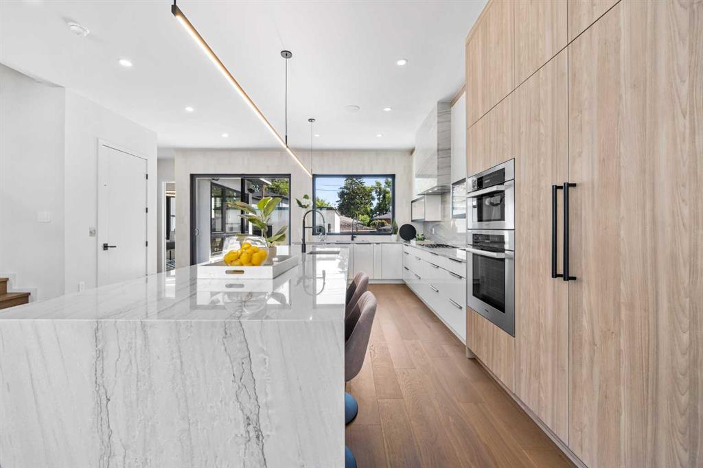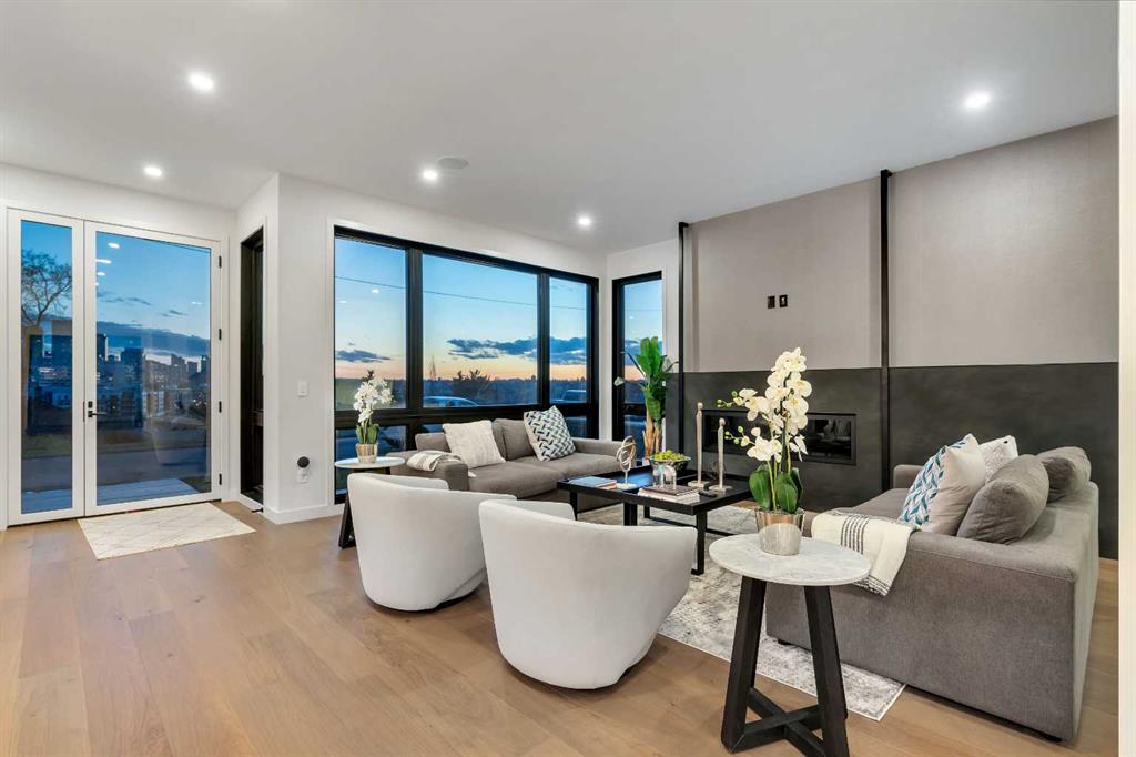 An architectural masterpiece by Silverpoint Custom Homes and Paul Lavoie Interior Design. Perched on a spectacular lot overlooking Bridgeland, and offering breathtaking views of the City and Rocky Mountains. A 5,200-square-foot gem, which seamlessly blends Hollywood Hills vibes, in a meticulous and one of a kind design. A fantastic open floor plan with a separate formal living and dining rooms overlooking the city. Boasting a truly magnificent kitchen, featuring a 13ft waterfall island and all MIELE appliances. Hardwood floors weave throughout the four levels including the basement, creating a harmonious atmosphere of seamless design. The main level surprises you with a hidden coat closet, a spacious mudroom, and a private den overlooking a backyard oasis with a large deck, (hot-tub ready) Move effortlessly between levels via the elevator or a captivating floor to ceiling glass-walled staircase leading to three generous bedrooms and a master top suite, simply like no other. The second floor offers 3 spacious bedrooms with panoramic city views from 2 bedrooms, private balconies, and a separate family lounge with access to a full guest bath. A fabulous laundry room and linen closet complete this level, not to mention large picture windows offering fulll sunrise worthy east views. The third-floor PRINCIPAL BEDROOM is a showstopper with a HUGE BALCONY showcasing the best panoramic city and mountain vews. A separate lounge area with coffee bar, fridge and a built in TV LIFT separate the bedroom area. As you enter the ensuite, flooded with natural light, a magical SMARTGLASS window gives you the option of privacy, or to enjoy the fabulous city views while soaking in the tub. A luxurious dual vanity, dual spa shower area surrounded by glass, featuring heated floors and shower bench. The walk-in wardrobe suite is a one of a kind dream space, with built in\'s that will rival a designer shop. Large skylights, a huge window and your own washer/dryer, make this the perfect dressing area. The lower level caters to the extended family and features a media area with full bar, gym, and a large bedroom. A full bath including a steam shower completes this level with all heated hardwood flooring. The outdoor spaces surrounding the house lets you indulge in extended year round outdoor living. A large front patio with a fire pit option, and seating lets you indulge in the west city and mountain views. The rear yard offers you a great dining space, and private relaxation areas with an optional hot tub, and a multi purpose sports area or green space. This home as expected includes all Smart home features, an elevator, extensive internal glass walls, AC, infloor heat, and an oversized garage with a full third car garage option which can be built prior to possession for the buyer at cost. An amazingly unique home with modern, yet classic design elements, encompassing every luxury option a discerning home owner would desire in their dream home.