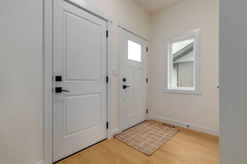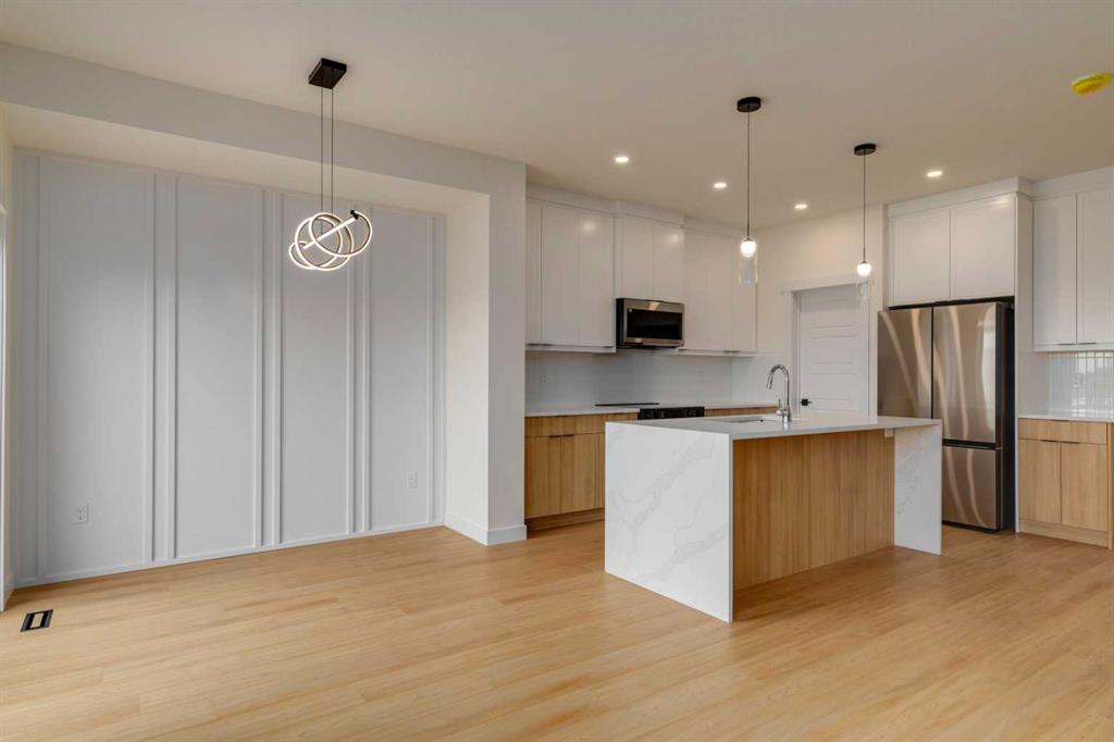 Welcome to this stunning newly built ½ duplex in the peaceful and growing town of Didsbury, where small-town charm meets modern living. Your new home was expertly constructed by Trailmark Homes, thoughtfully designed with no expense spared! This home is packed with high-end finishes, unique architectural touches, and smart construction upgrades that make it a standout in its class. Step inside and you’ll immediately notice the attention to detail. The main floor features beautiful 6.5mm luxury vinyl plank flooring, sleek black accents, spindle railing, and a wood feature wall in the dining area that adds warmth and character. The living room offers an inviting space with a striking electric linear fireplace surrounded by full-height tile. The spacious powder room includes a full vanity—an elevated and rare touch in similar homes. The designer kitchen is truly impressive, boasting quartz countertops with dramatic waterfall edges on the island, a stylish two-tone cabinet design with painted MDF uppers and melamine lowers, full-height cabinets, soft-close drawers and doors, and a massive walk-in pantry. High-end Samsung Bespoke AI Home appliances make this space as functional as it is beautiful. Upstairs, you’ll find three generously sized bedrooms. The primary suite includes a bold black wood feature wall, a large walk-in closet, and a luxurious ensuite with an oversized shower, dual vanities, and anti-fog, LED-lit multifunction mirrors. The additional two bedrooms are bright and well-sized, and the upper floor also features a full main bathroom and a convenient laundry area with Samsung Bespoke washer and dryer included. The basement is undeveloped and offers excellent potential for a future legal suite (subject to town approval). It includes a private side entrance, rough-ins for a bathroom and kitchenette, and full-span floor joists—meaning there are no posts, allowing for an open and functional layout when finished. This home also includes an Ecobee smart thermostat, upgraded carpet and underlay, Moen faucets throughout, and a driveway constructed with fiberglass rebar to help reduce the chance of cracking. The backyard is spacious and backs onto the high school field, offering a peaceful view and extra privacy. A back deck is already built and includes a gas line, you also get a $500 landscaping credit. The home is also covered by full new home warranty for added peace of mind. Located just 40 minutes north of Calgary, Didsbury is a welcoming and well-serviced community offering schools, shopping, parks, medical facilities, and a golf course—all with the feel of a close-knit town. Whether you\'re a first-time buyer, investor, or looking for a stylish new home with future suite potential (subject to town approval), this property offers unmatched value, functionality, and style. Don’t miss your chance to own a thoughtfully built, beautifully finished new home in one of Alberta’s most charming small towns. Book your private showing today!