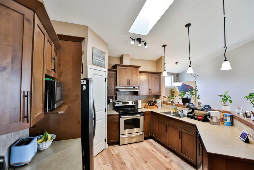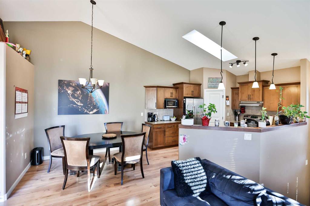 Welcome to 102 Haru Moriyama Place in beautiful Legacy Ridge North Lethbridge—perfectly located close to the school, parks, and scenic coulee walking paths. This half-duplex sits on a desirable corner lot with mature trees, a large fully fenced backyard, and a sheltered, covered deck with stairs to grade for easy outdoor living. Inside, you’ll love the bright and airy feel created by vaulted ceilings, a skylight in the kitchen, maple cabinetry, and a functional corner pantry. The basement was fully developed in the last four years and features large windows that make the space feel open and inviting. With a total of four bedrooms and two full bathrooms, one with a jetted tub!—two up and two down—this home offers excellent flexibility for families, guests, or revenue potential. Additional highlights include main-floor appeal, a single attached garage, and the comfort of central air-conditioning. This is a fantastic opportunity to get into a great neighbourhood with modern updates and plenty of space inside and out.