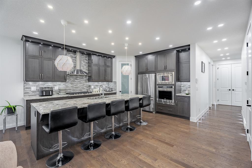 Upstairs, TWO Master Bedrooms include 5-piece ensuite bathrooms featuring two vanities with plenty of storage, soaking/jet tub, and separate glass shower. All 4 bedrooms are equipped with walk-in-closets. The third room has Cheater Five-piece Ensuite that has door into the hallway and it serves as the main bathroom for fourth bedroom as well. The upper level laundry room adds convenience to your daily routine, and big bonus area offers additional space for relaxation or entertainment. A full basement with separate entrance has a huge rec area, kitchen, two bedrooms, and two four-piece bathrooms and a spacious theater. A big deck and backyard await you outside during the warm summer months! The front connected garage and driveway can accommodate seven automobiles at all times! Book a showing at this stunning home today!
