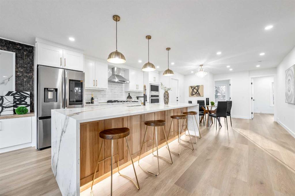 FULLY RENOVATED with all City Permits, Welcome to this stunning Front garage bungalow home that has been beautifully renovated in an oversized lot on a nice quiet street in the desirable community of Willowpark. This stunning bungalow has undergone a top-to-bottom renovation to the highest standards, ensuring that every detail has been carefully crafted to its perfection. You are welcomed by a huge open concept living area with 5 BEDROOM/ 3 Bathroom/2 Kitchens in the house. As you enter the home, you will immediately notice the durable vinyl plank flooring that flows throughout the main living space, creating an inviting and modern ambiance. The open concept living area boosts a spacious living room with large windows that allows natural light to flood in and brighten up the space with a cozy modern fireplace. The kitchen is a chef\'s dream, complete with stainless steel appliances, and a large quartz countertop with a great size island is perfect for entertaining guests. The main level features a primary bedroom with ensuite and 2 more bedrooms, with a full bathroom conveniently located nearby. The legal basement suite has two more bedrooms, full bathroom, separate laundry and a kitchen with separate entrance, making it an ideal space for guests or Airbnb to generate extra income. Come and experience the beauty of this home for yourself. CLOSE TO TRANSIT, SHOPPING CENTER, PARK and SCHOOLS. Renovation completed within city permit compliance. Book your showing Today!