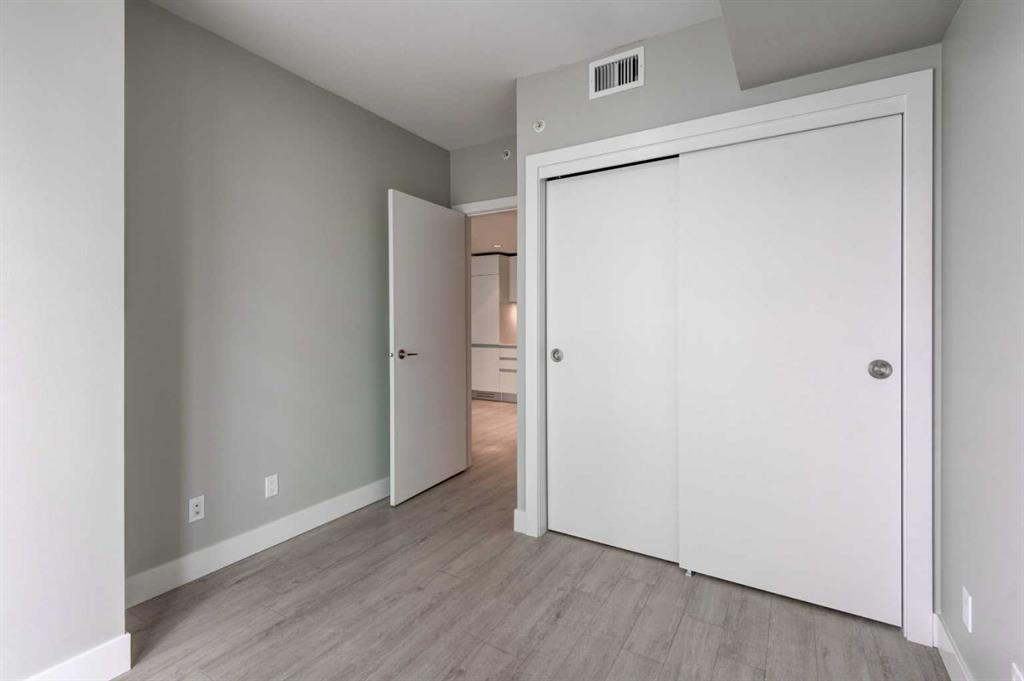 Floor-to-ceiling windows in both the living room and bedroom fill the home with natural light and showcase an open, airy layout. The contemporary European-inspired kitchen features sleek cabinetry, quartz countertops, glass backsplash, under-cabinet lighting, and a fully integrated stainless steel appliance package. Step onto your private balcony and take in impressive views of the Calgary Tower, downtown skyline, and cityscape. Additional highlights include in-suite laundry, central A/C, titled underground parking, and a separate assigned storage locker. Residents of The Guardian enjoy premium amenities: 24-hour concierge, a fully equipped fitness centre, resident lounge, garden terrace, bike storage, workshop, and pay-and-park visitor parking. Quick possession is available.
