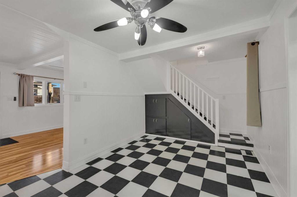 This charming 750.81 sq ft one-and-a-half storey cottage-style home in Delburne offers cozy living with thoughtful updates throughout, featuring two bedrooms including a main-floor primary with a walk-in closet, a second bedroom on the upper level, and a convenient four-piece bathroom with main-level laundry. The inviting living room showcases engineered hardwood flooring and a wood-burning fireplace, while the kitchen and dining area highlight classic black-and-white checkered flooring paired with crisp white cabinets and countertops. Outside, the fully fenced yard includes a covered upper deck with two additional lower-tiered decks, perfect for outdoor enjoyment, along with a single detached garage equipped with a wood stove and attached car port for storage. Recent 2023 upgrades include: a new hot water tank, flooring, dishwasher and dryer. A poured concrete crawl space provides ample storage and houses the furnace and hot water tank, completing this warm and welcoming Delburne home. Delburne, Alberta offers a surprisingly wide range of amenities for a small central-Alberta village, and is located 40 km east of Red Deer. Delburne features a K–12 school, a medical centre with a pharmacy, and high-speed fibre-optic internet, which together make the community practical for families and remote workers. You have access to grocery stores, restaurants, a gas station, walking trails, a spray park, a golf course and so much more. If you are tired of the hustle and bustle lifestyle in a larger area, this may be the perfect place for you to reside.