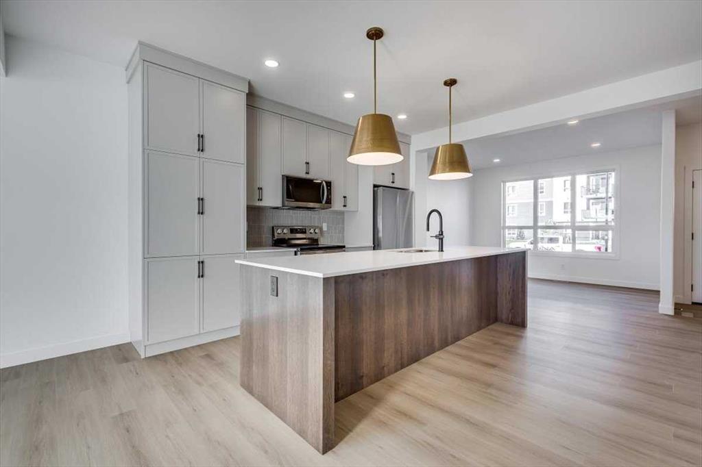 TURN THE KEY & just start moving right in! Blinds, 6 appliances, fence & sod all included with No condo fees! Brand New, Stylish, modern 2 Storey Townhomes in the new area of Iron Gate. IMMEDIATE possession! Say Goodbye to the stress of older homes & get Alberta New Home Warranty plus additional builder warranty by winner of the 2024 Builder of year award, Asset Builders Corp. Step onto your 7\'x7\' front deck, into your spacious entry & you are greeted by a bright & spacious open layout on this main floor. Check out all the natural sunlight through these large energy efficient triple pane windows & you will love this amazing vinyl plank flooring throughout w/cushy carpet in the bedrooms upstairs. The kitchen is the heart of the home, with a large island w/extended Quartz countertops (perfect for your stools, kids homework sessions, or long chats while cooking), built in pantry area, & 4 stainless kitchen appliances included. Dining room will fit your large tables & extra family members. The favorite space of all parents out there is this back entry w/half bath @ the back door that leads to your 10\'6\"x10\' back deck w/aluminum railing & sunny south facing & sodded backyard for all those sun worshippers out there, with vinyl fence & a 20x20 gravel parking area, room for 2 car parking off paved back lane. Upstairs you will find the handy laundry room (with stacker washer & dryer included), 2 good sized bedrooms, a full main bath + a Primary bedroom that features a large walk in closet & full 4 piece ensuite. Extra bonus is the huge hallway closets that make the best use of space! Downstairs is open for your inspiration, planned for future bdrm, bath & family room w/plenty of natural light & extra storage. GST included w/rebate to builder. This newer neighborhood is close to shopping, food & highway. A single detached garage can be built on this property in the future.