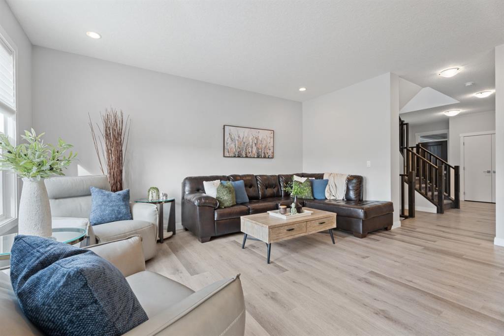 Discover the charm of valley living in Cranston’s highly sought after Riverstone community. With direct access to Fish Creek Park, the Bow River, endless walking paths, and tranquil surroundings, this elevated lifestyle is truly unique to Calgary. Backing onto a green space and pathway with quick access to a park and playground, this fully developed family home is designed for comfort and connection. Step into the welcoming front foyer with high ceilings and abundant natural light. The main level features durable vinyl plank flooring in neutral tones, creating a modern and inviting feel throughout. The kitchen is a showstopper, with a designer tile backsplash, statement hood fan, gas cooktop, built in oven and microwave, two toned quartz countertops, and upgraded cabinetry. A spacious walkthrough pantry with room for a second fridge or freezer connects to the mudroom, offering practical access to the garage and a conveniently located powder room. Upstairs, the primary suite is a private retreat complete with a lovely ensuite featuring a soaker tub, dual sinks, a walk in tiled shower, and a generous walk in closet. Two additional bedrooms, a full bathroom, upper laundry, and a bonus room round out the second floor. The fully finished basement extends the living space with a large rec room, fourth bedroom, full bathroom, and plenty of storage. Central A/C ensures year round comfort. Enjoy the outdoors in your large backyard with a spacious deck, large storage shed and backing directly onto a pathway that leads to the nearby playground. The community is designed to take advantage of the natural topography: ridges, escarpments, river valley- offering views and green space throughout. Check out the virtual tour!