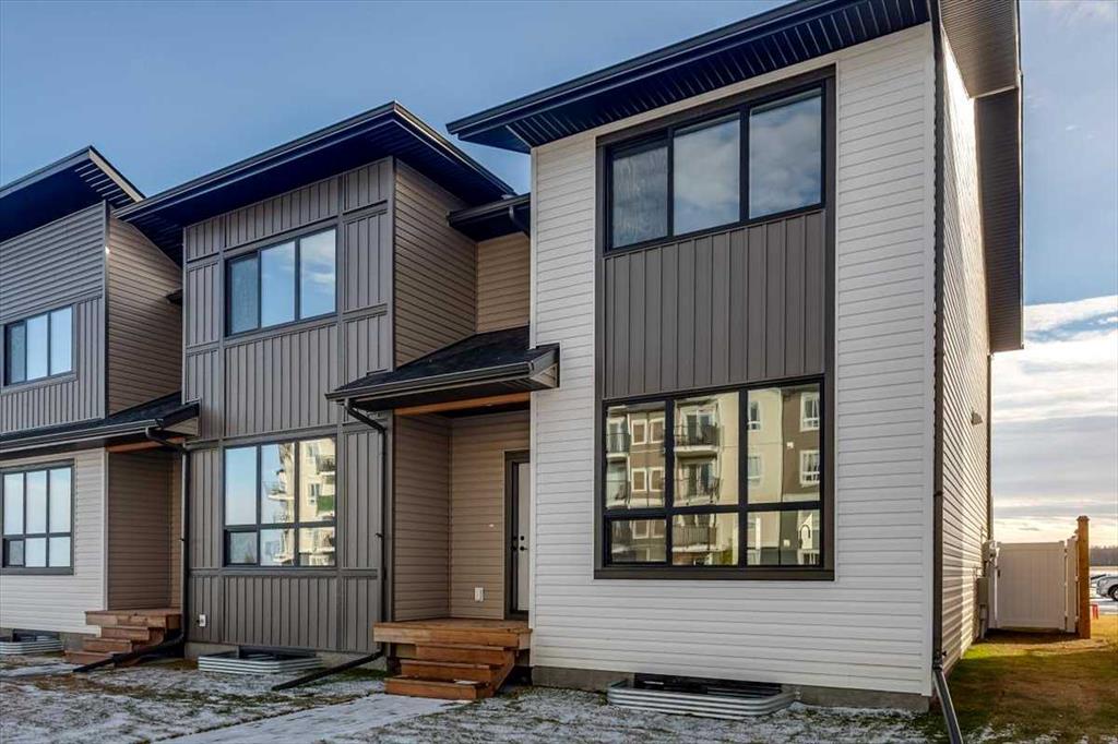 END UNIT!! And INCLUDES FENCE, SOD, BLINDS & 6 APPLIANCES with NO Condo Fees! Brand New, Stylish, modern 2 Storey Townhomes in the new area of Iron Gate for Immediate possession! Say Goodbye to the stress of older homes & get Alberta New Home Warranty plus additional builder warranty by winner of the 2024 Builder of year award, Asset Builders Corp. Step onto your 7\'x7\' front deck, into your spacious entry & you are greeted by a bright & spacious open layout on this main floor. Check out all the natural sunlight through these large energy efficient triple pane windows & you will love this amazing vinyl plank flooring throughout w/cushy carpet in the bedrooms upstairs. The kitchen is the heart of the home, with a large island w/extended Quartz countertops (perfect for your stools, kids homework sessions, or long chats while cooking), built in pantry area, & 4 appliances included. Dining room will fit your large tables & extra family members. The favorite space of all parents out there is this back entry w/half bath @ the back door that leads to your 10\'6\"x10\' back deck w/aluminum railing & sunny south facing backyard for all those sun worshippers out there, with full fence from back of unit towards 20x20 gravel parking area, room for 2 car parking off paved back lane. Upstairs you will find the handy laundry room, 2 good sized bedrooms, a full main bath + a Primary bedroom that features a large walk in closet & full 4 piece ensuite. Extra bonus is the huge hallway closets that make the best use of space! Downstairs is open for your inspiration, planned for future bdrm, bath & family room w/plenty of natural light & extra storage. GST included w/rebate to builder. This newer neighborhood is close to shopping, food & highway. A single detached garage can be built on this property in the future. *please note Island lights are different than pictures.