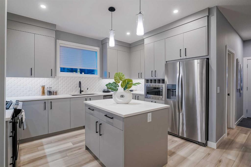 Open House Saturday Dec 6th 2pm-4pm! On a large corner lot with rare extra parking, this home stands out immediately—for its location, welcoming curb appeal, and design. The backyard holds a double garage, and there’s even room beside it to create an additional parking pad with a simple fence modification. Inside, the house is bathed in light. Extra windows, open railing, and 9’ ceilings on both the main floor and the 9’ basement give the home a sense of volume. The main floor includes an office that can double as a small bedroom and a half bath with a full vanity. The living room centres around an oversized fireplace fit for a King & Queen—framed by custom built-ins that instantly elevate the space. Storage is a quiet strength throughout, with a whole pantry wall in the dining area, a kitchen island with additional storage, and more cabinet space than you’ll use. The kitchen is clean & modern, with excellent sightlines, plenty of prep space, and a smooth flow to the rest of the main level. Upstairs, the primary suite delivers what most buyers are actually hunting for: a well-proportioned bedroom, a walk-in closet with built-in shelving/drawers, and an ensuite with a large dual vanity, a deep soaker tub and a generous walk-in shower. Two more bedrooms (one with a walk-in closet with built-ins), a laundry closet, and a full bath finish the floor. The window coverings throughout the home are high-end silhouette-style blinds, an upgrade that adds softness & light control. Additional upgrades include A/C, a water softener, and a complete radon mitigation system for peace of mind. The basement remains unfinished but is well set up, with 9’ ceilings, two large egress windows, and a layout that makes future development straightforward. Outside, the yard is fully fenced & freshly stained. The roof on both the house & the garage is new as of October 2025. At 1,651 sq ft above grade, this home offers a balanced, intelligently designed layout in a location that’s only getting better with every new amenity being built around it. The corner lot, the light, the upgrades, the storage, the parking—everything adds up to a home that’s hard to beat in this price bracket. Chelsea continues to grow into one of Chestermere’s most appealing new communities, with pathways a block from the home that link you to parks, playgrounds, and the extensive trail system shared with neighbouring Dawson’s Landing—including future pathway access to the 22-acre eco-park located a few blocks away. Amenities are on the way as well. A new public K–9 school in Dawson’s Landing has full construction funding; a future Grades 10–12 public high school is planned for Chelsea; and a new Catholic K–9 school is also in the works. Chelsea’s upcoming shopping district will add everyday conveniences, including a future grocery store and additional retail and services, all within minutes of the home. It’s a location with strong outdoor appeal today and meaningful long-term upside as the community build-out continues.