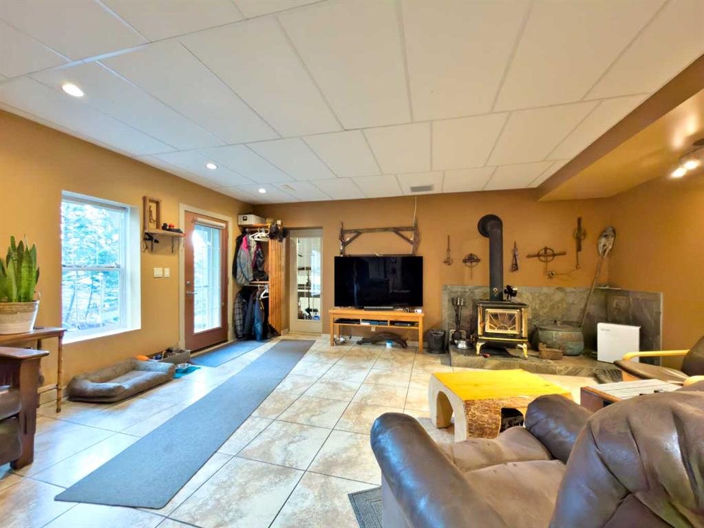 The walk in basement level remains cozy during the winter months with in-floor heating and a comfortable family room space with a quality wood stove. There is a ton of storage on this floor, a large craft room, bedroom, and a 3pc bath with a super nice custom sauna fitted within.